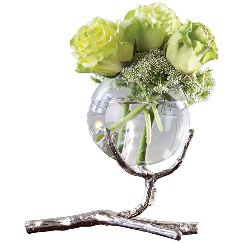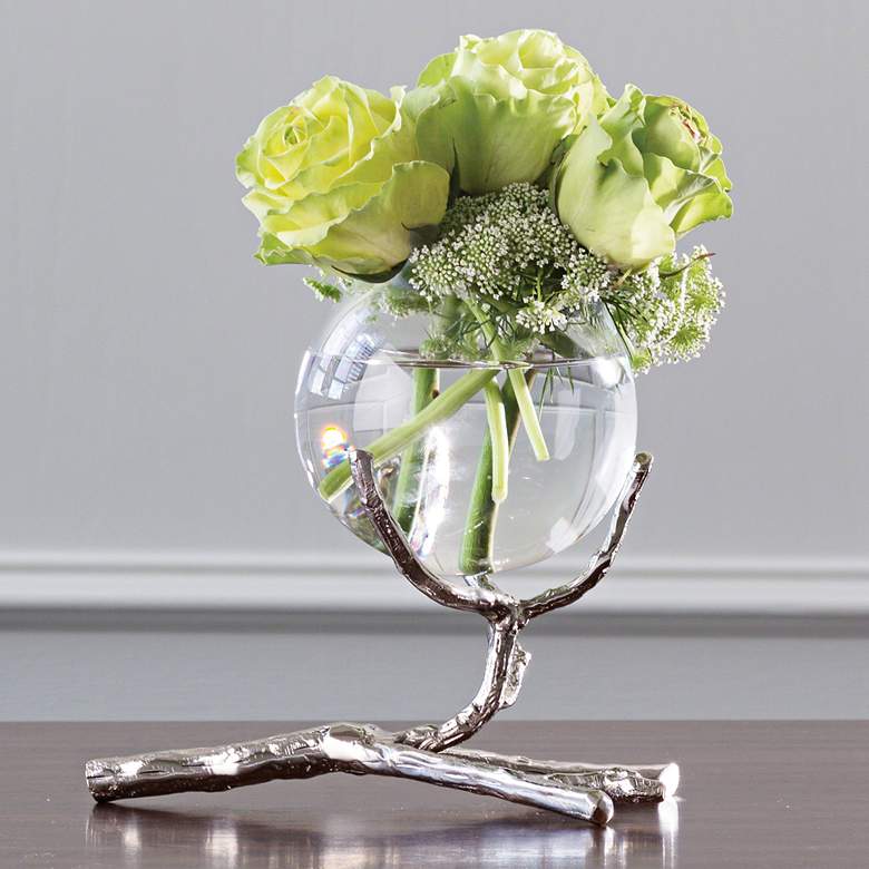 Hand-polished and crafted from solid sand cast brass, this inspiring piece reflects a sophisticated praise of nature. Place this contemporary medium nickel finish twig 2-vase holder in an especially visible spot.