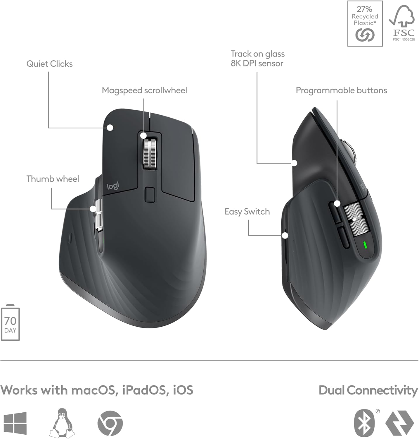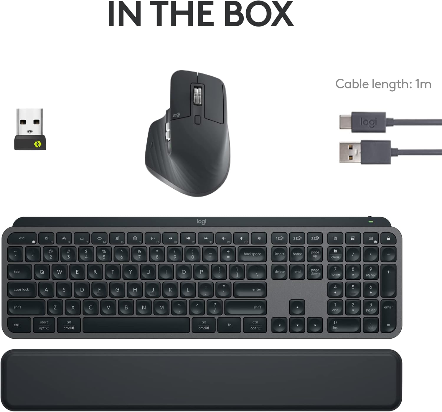 Logitech MX Keys S Combo - Performance Wireless Keyboard and Mouse with Palm Rest, Customizable Illumination, Fast Scrolling, Bluetooth, USB C, for Windows, Linux, Chrome, Mac
