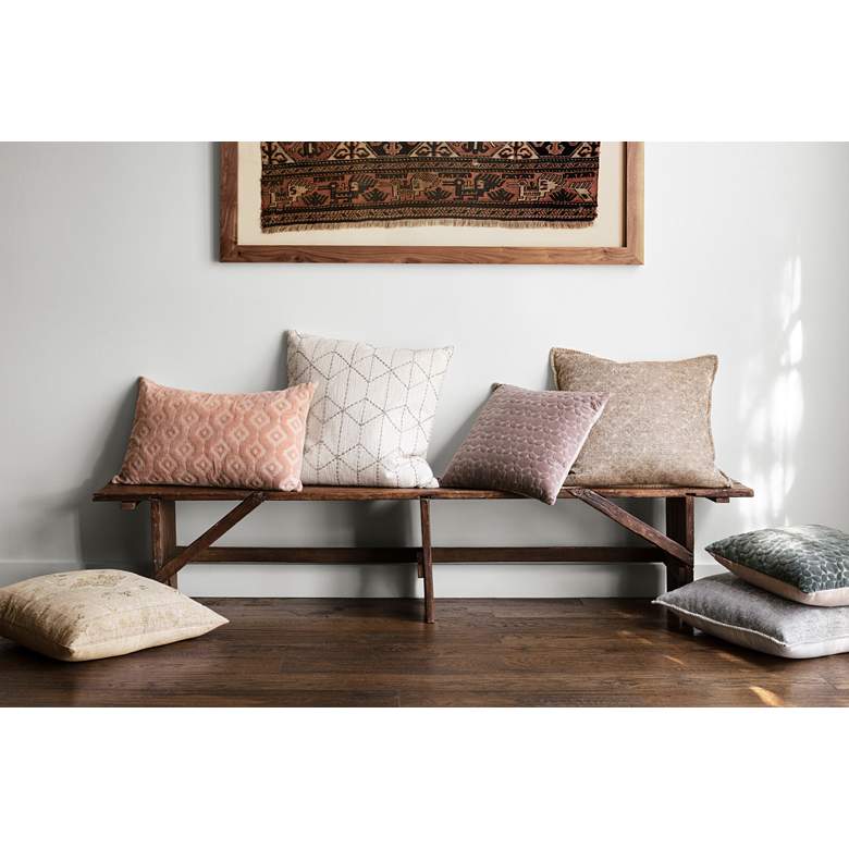 Covered in a blend of polyester, nylon, and linen material, this traditional square decorative pillow becomes a staple in a living area or bedroom. A soft, charming diamond-bias print in subtle beige is versatile and yet design-forward. Piped edges add a finishing touch. This pillow by Loloi is a classic.