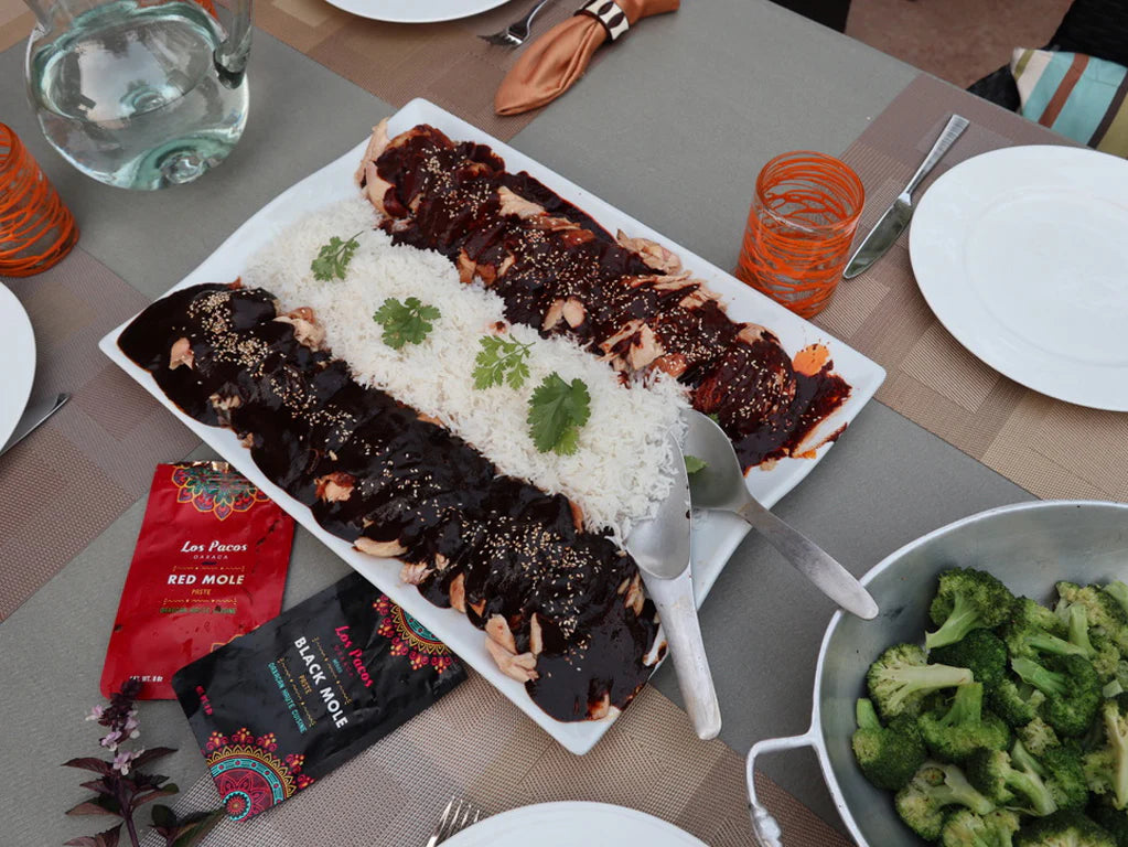 BLACK MOLE (8oz): The most representative and traditional mole of Oaxaca, includes more than 32 ingredients, including almonds, raisins, peanuts, chocolate, and banana among others. In Los Pacos the process of preparing this mole takes us 5 days, its flavor is the purest expression of the fusion of flavors of Mexican cuisine.