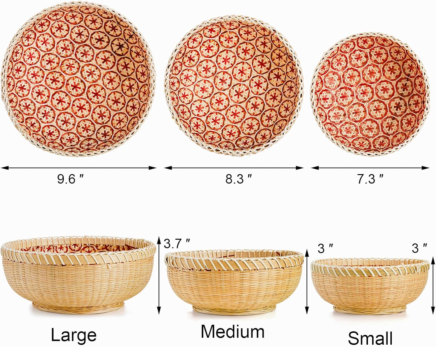 - šš®š„šš¢-šš¬š: Woven basket set is not only for food, but also perfect for holding things like stationery, toiletries, cosmetics, keys, and more. The sturdy base of these bamboo baskets makes them perfect for holding things stably without tipping.