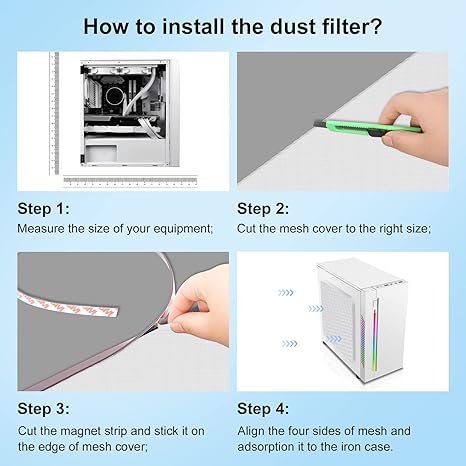 - Customizable DIY PC Fan Mesh Cover:This computer fan dust mesh magnetic frame measures 300x800mm (11.8 “x31.5”) with 3m 118-inch magnetic strips, easy DIY cutting for customized dust protection system.