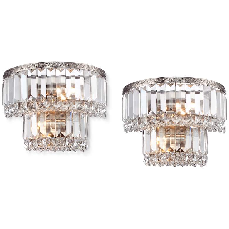 Magnificence Satin Nickel 10" Wide Crystal Wall Sconce Set of 2