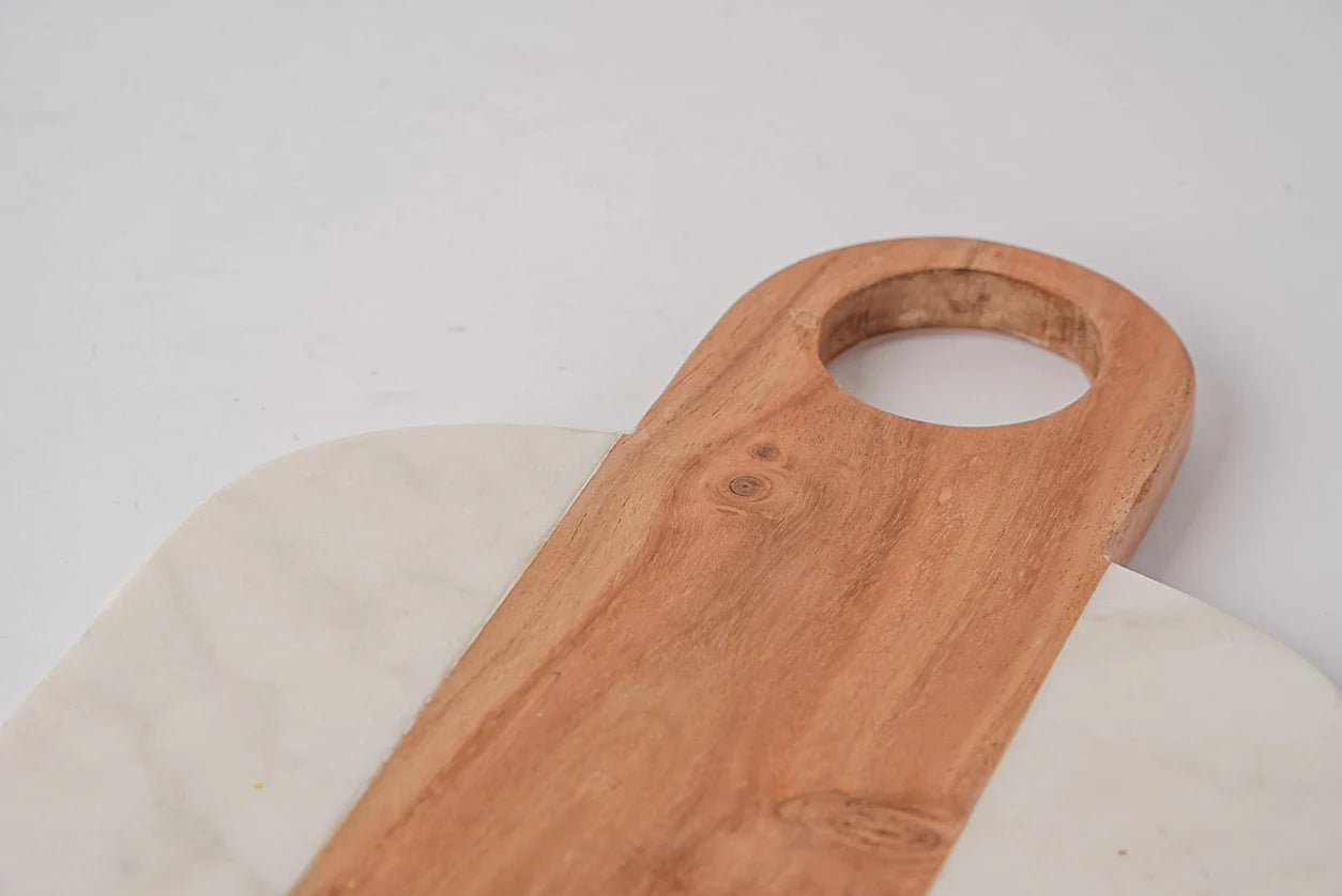 Elevate your dining experience with Verve Culture’s Marble & Acacia Wood Serving Board, a stunning fusion of natural elegance and functionality. Designed with sleek handles at both ends, this handcrafted board is perfect for serving cheeses, charcuterie, appetizers, and desserts in style.