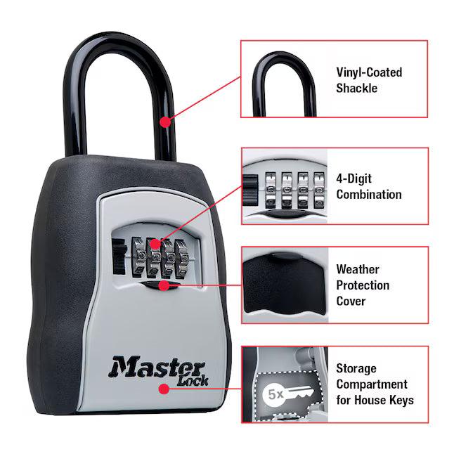 For indoor and outdoor use; key safe is constructed with a metal body for durability, vinyl coated shackle to prevent scratching