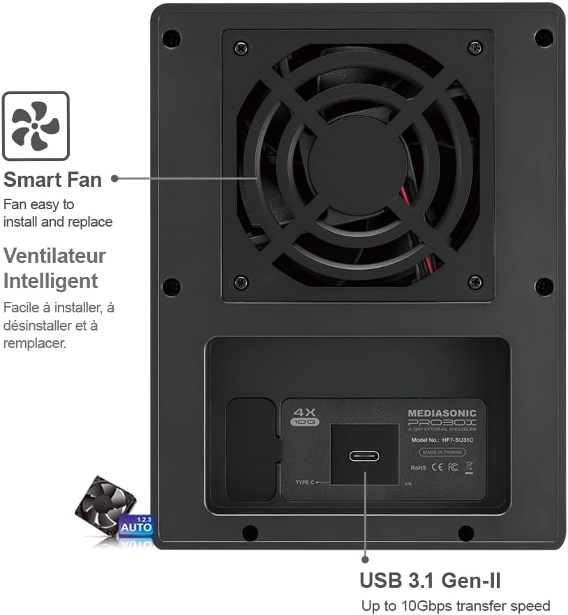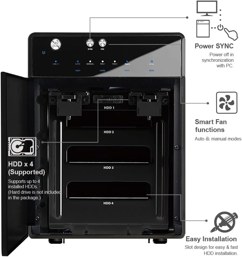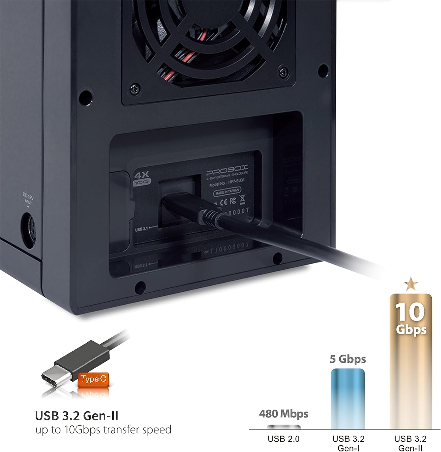 Mediasonic USB 3.2 4 Bay 3.5” SATA Hard Drive Enclosure DAS – USB 3.2 Gen 2 10Gbps Type C | USB-C (HF7-SU31C) Support 30TB HDD