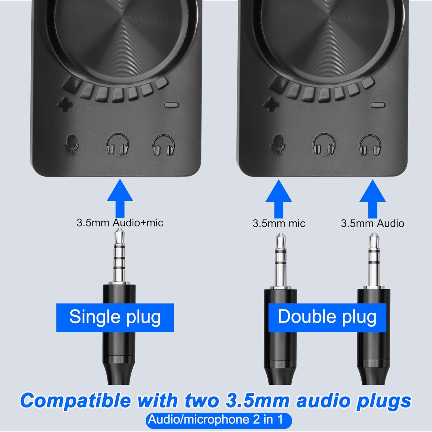 - The External USB Sound Card with Wide Compatibility: USB to 3.5mm Jack Audio Adapter Cable External Sound Card can be used to replace a faulty sound card or audio port. You can connect PS5, PS4, Xbox One, headphones, microphone and other 3.5mm interface devices to PC or laptop through the sound card.