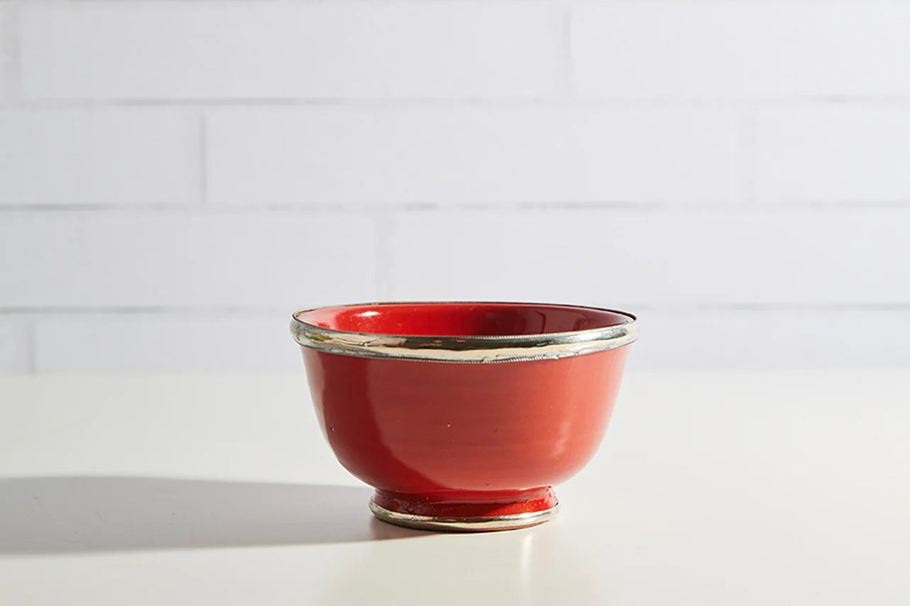 A stunning marriage of traditional Moroccan artistry and elegant design, these handcrafted serving bowls will be a centerpiece of your dining experience. The vibrant glazes combined with the delicate Berber silver trim boast a distinctive design that will add an artistic flair to any table setting. Ideal for serving soups, salads, and side dishes, these bowls make a thoughtful housewarming gift or the perfect touch to your next dinner party.