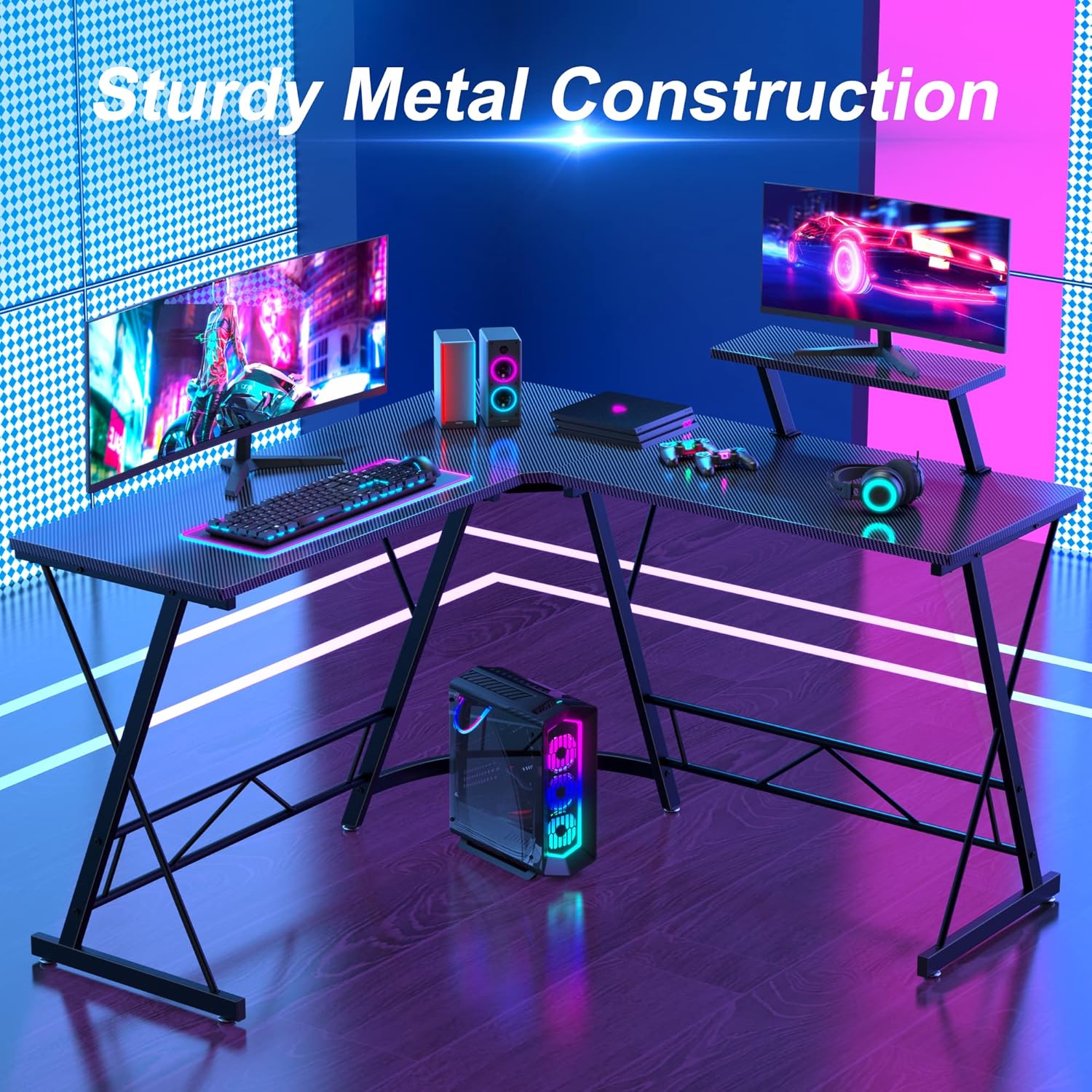 - Special Feature: Gaming Desk with Stable Structure, L-Shaped Desk with Large Desktop, Computer Desk with Monitor Stand, Fast Assembly, Easy Cleaning, Ample Leg Room, L-Shaped Gaming Desk with Adjustable Foot Pads