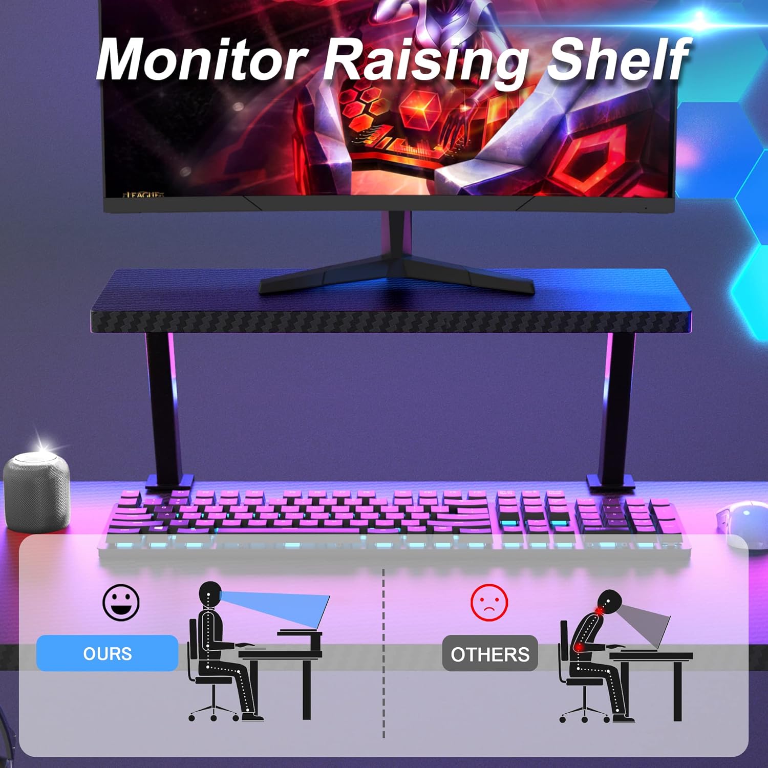 - [Removable Monitor Stand]: The monitor stand can be installed on either side of desk. It allows you to maintain the most relaxed sitting position by increasing the height of your computer monitor, reducing your eye strain and neck soreness caused by intense work.