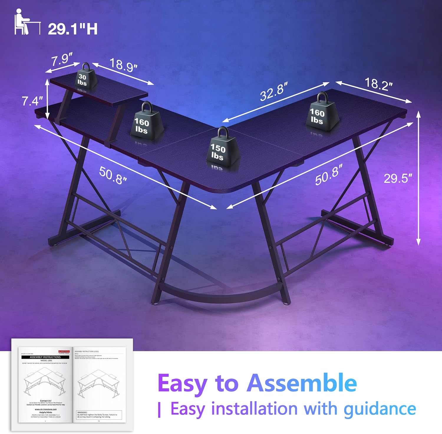 - Easy to assemble & Express Services: Hassle free & Time Saving Installation for the L shaped computer desk. Mr IRONSTONE provides every l shaped desk with detailed assembly instructions and necessary tools. Fairly easy to assemble within 35 minutes, providing you with an easy and pleasant shopping experience.