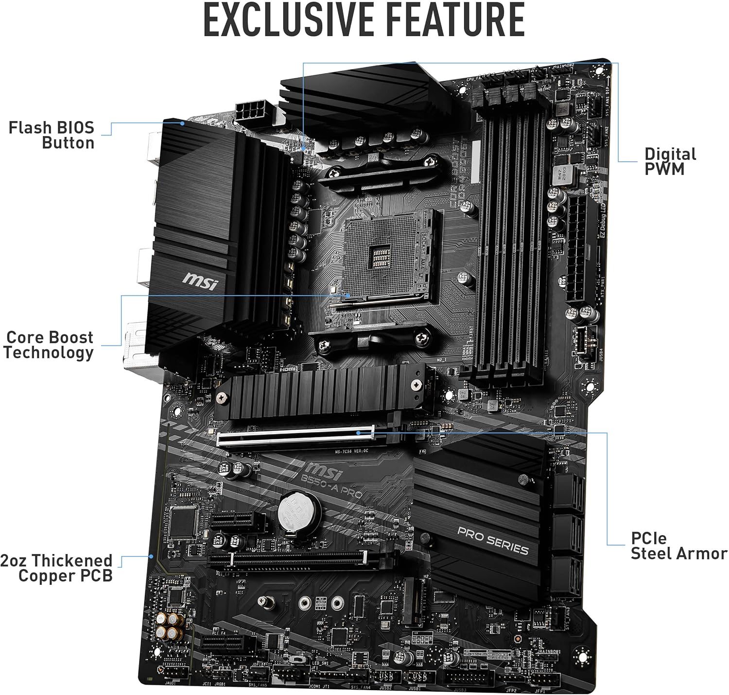 MSI B550-A PRO ProSeries Motherboard (AMD Ryzen 5000, AM4, DDR4, PCIe 4.0, SATA 6Gb/s, M.2, USB 3.2 Gen 2, HDMI/DP,... Read more Read more
