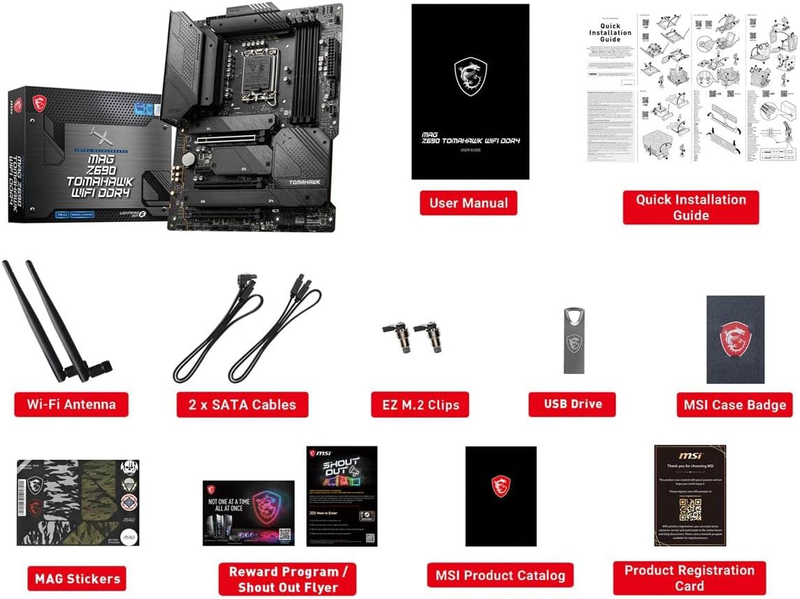 MSI MAG Z690 Tomahawk WiFi DDR4 Gaming Motherboard (ATX, 12th Gen Intel Core, LGA 1700 Socket, DDR4, PCIe 4, CFX, M.2 Slots, Wi-Fi 6)