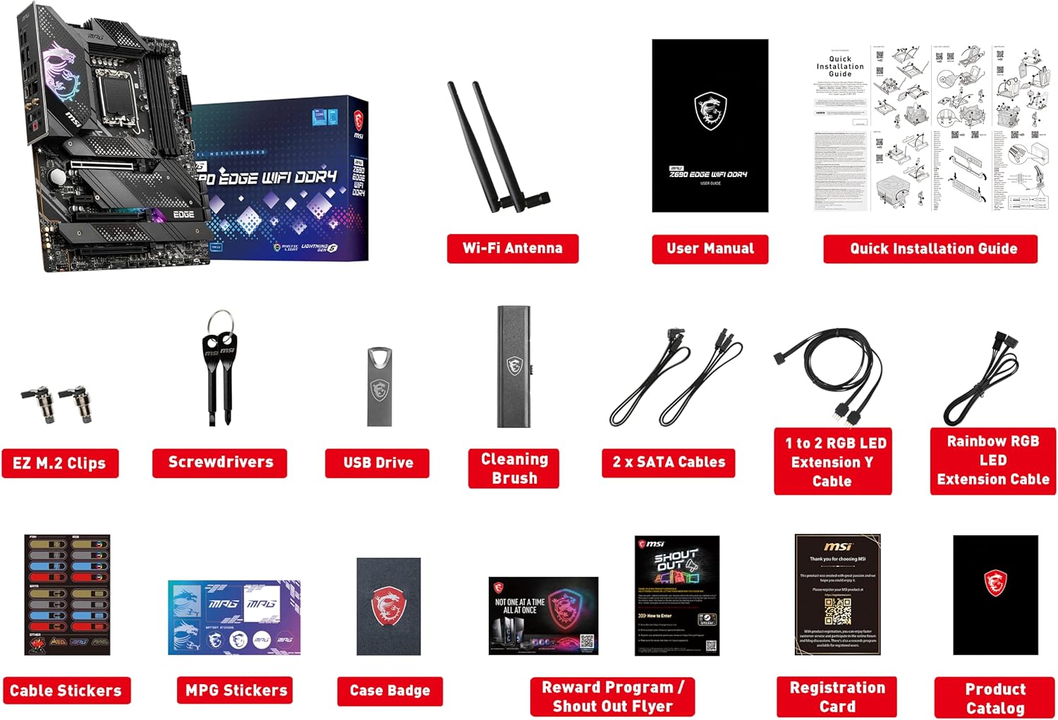 MSI MPG Z690 Edge WiFi DDR4 Gaming PC Motherboard (ATX, 12th Gen Intel Core, LGA 1700 Socket, DDR4, PCIe 4, CFX, M.2 Slots, Wi-Fi 6E) Intel Computer Motherboards (Renewed)