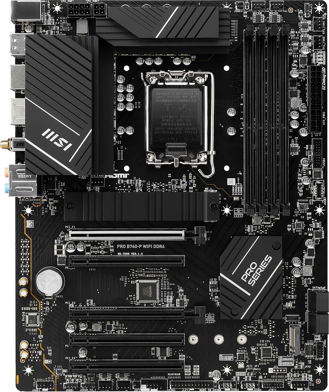 MSI PRO B760-P WiFi DDR4 ProSeries Motherboard (Supports 12th/13th/14th Gen Intel Processors, LGA 1700, DDR4, PCIe 4.0, M.2, 2.5Gbps LAN, USB 3.2 Gen2, HDMI/DP, Wi-Fi 6E, Bluetooth 5.3, ATX)