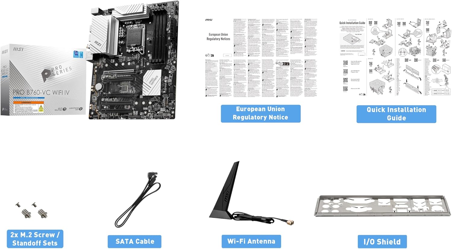 MSI PRO B760-VC WiFi IV ProSeries Motherboard (Support 14th/13th/12th Gen Intel Processors, LGA 1700, DDR5, PCIe 4.0, M.2 Slots, 2.5Gbps... Read more Read more