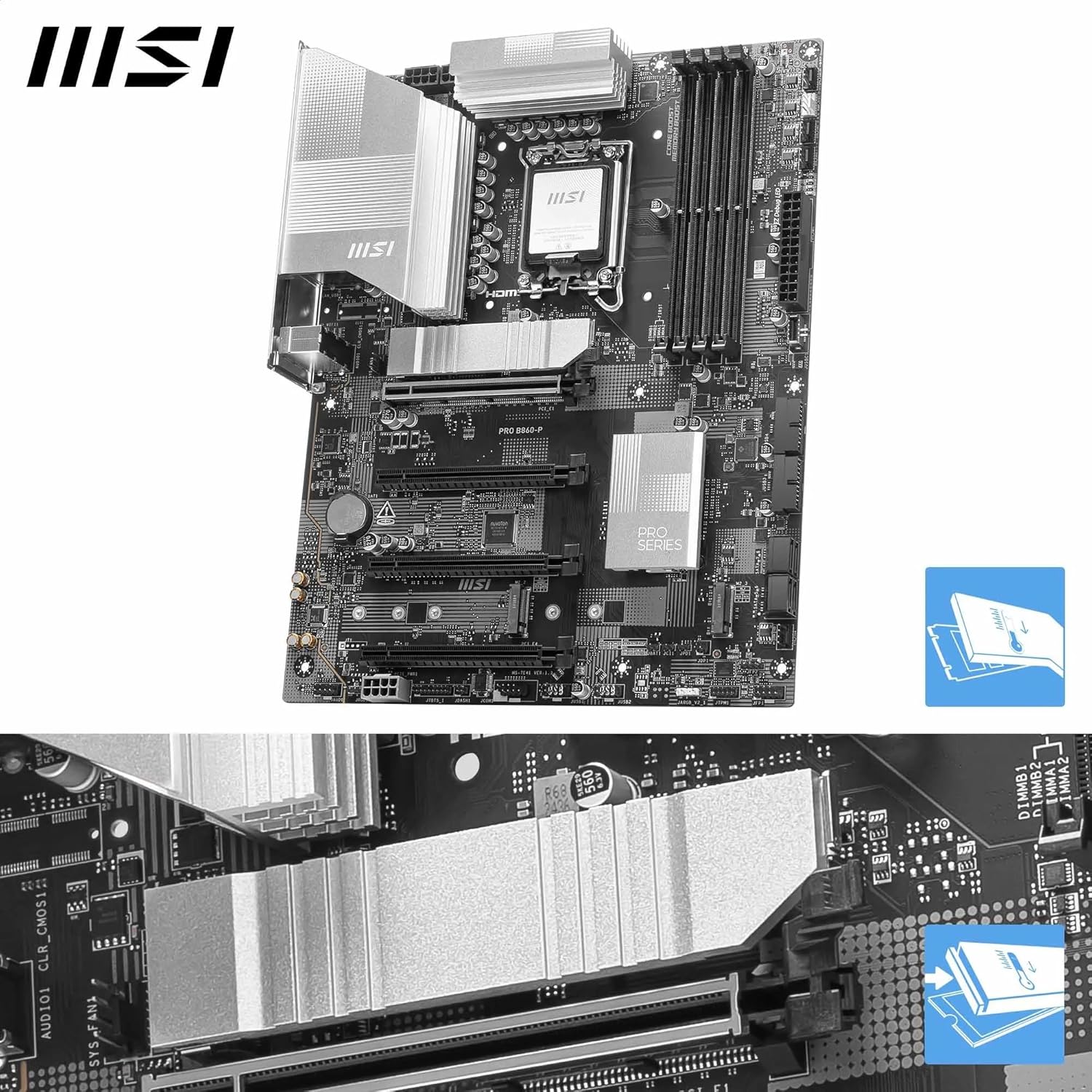 MSI PRO B860-P Motherboard, ATX - Supports Intel Core Ultra Processors (Series 2), LGA 1851-12 DRPS, DDR5 Memory Boost (8600+... Read more Read more