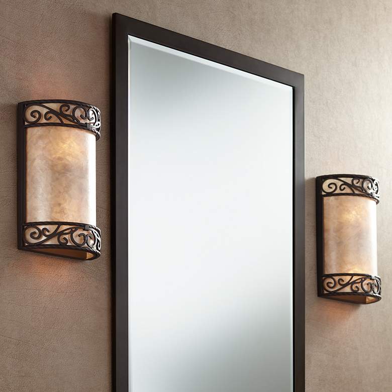 - Set of two traditional pocket wall sconces from the Natural Mica collection by John Timberland. Great for bath areas, hallways, or home theater rooms.