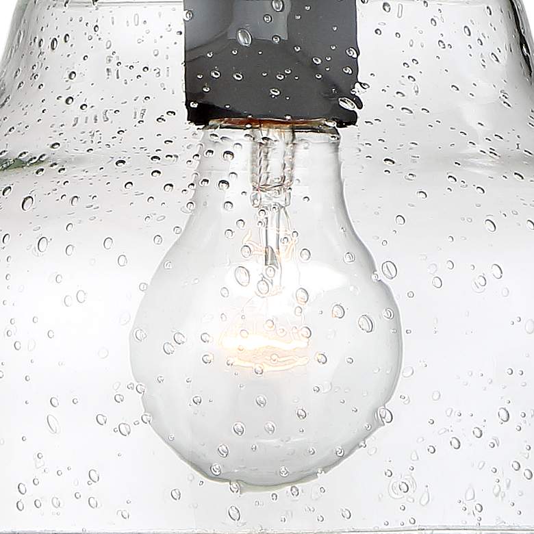 - Black finish over steel construction. Clear seedy glass shade with an open bottom.