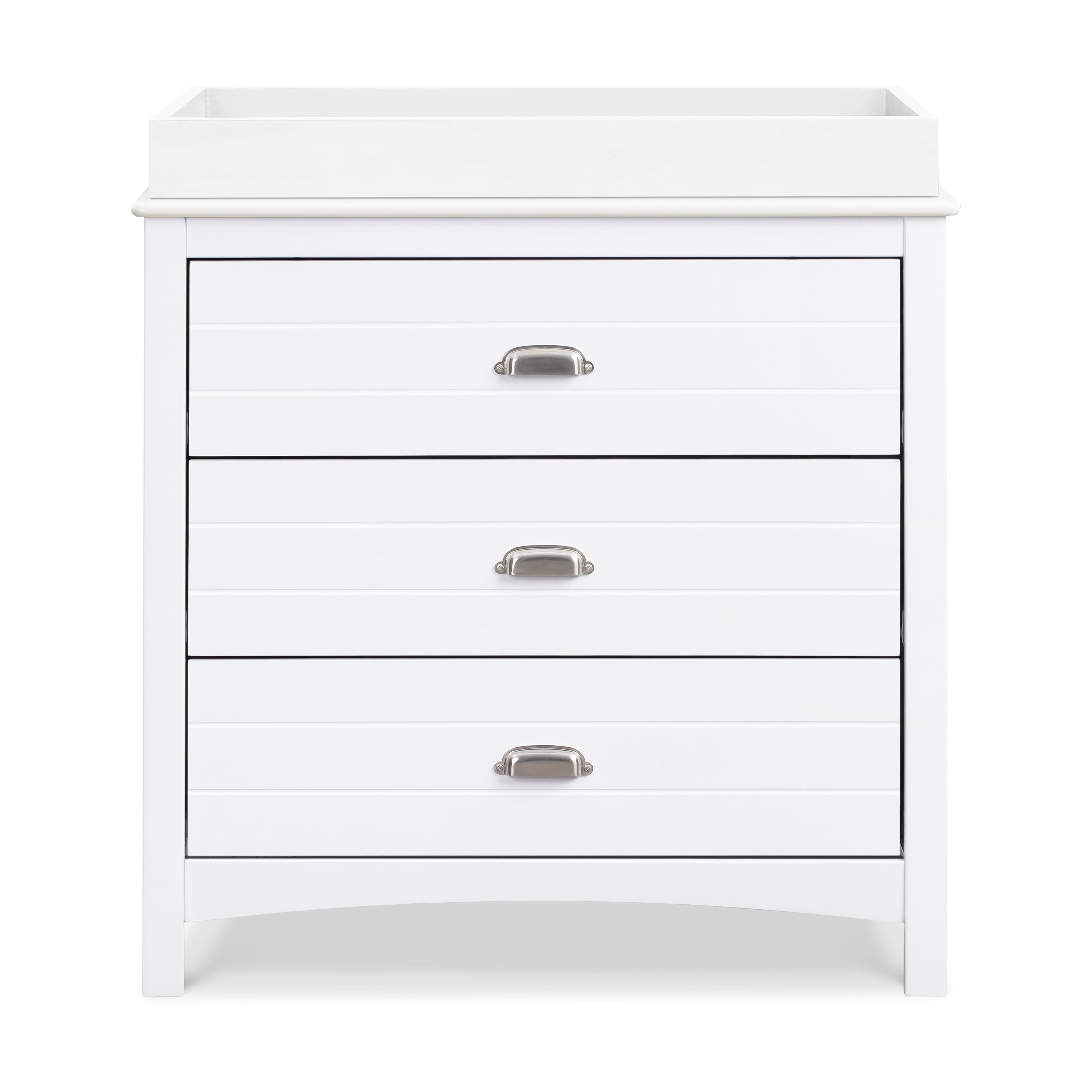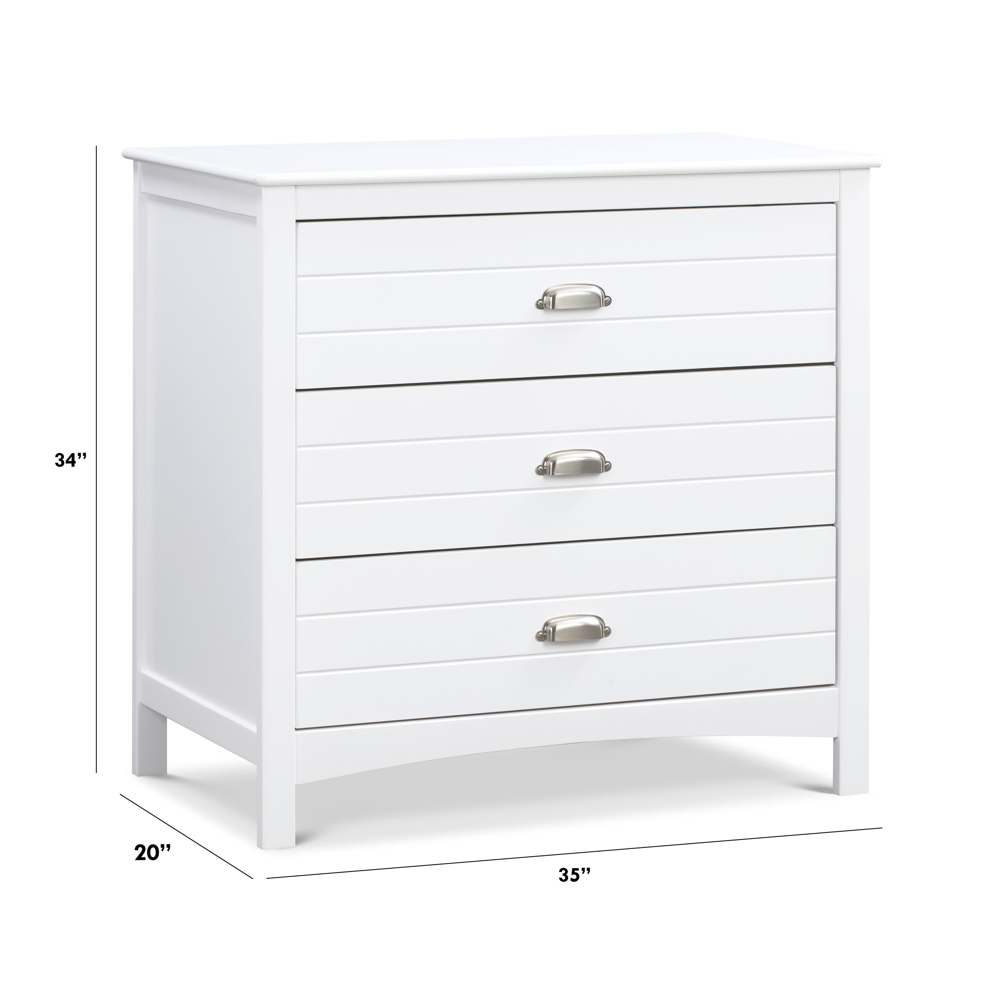 The Carter's by DaVinci Nolan 3-Drawer Dresser is a must-have storage solution that combines functionality with classic farmhouse styling. The Nolan dresser highlights contemporary shiplap style drawer fronts with metal cup pulls and offers spacious drawers to fit all the necessities for baby.