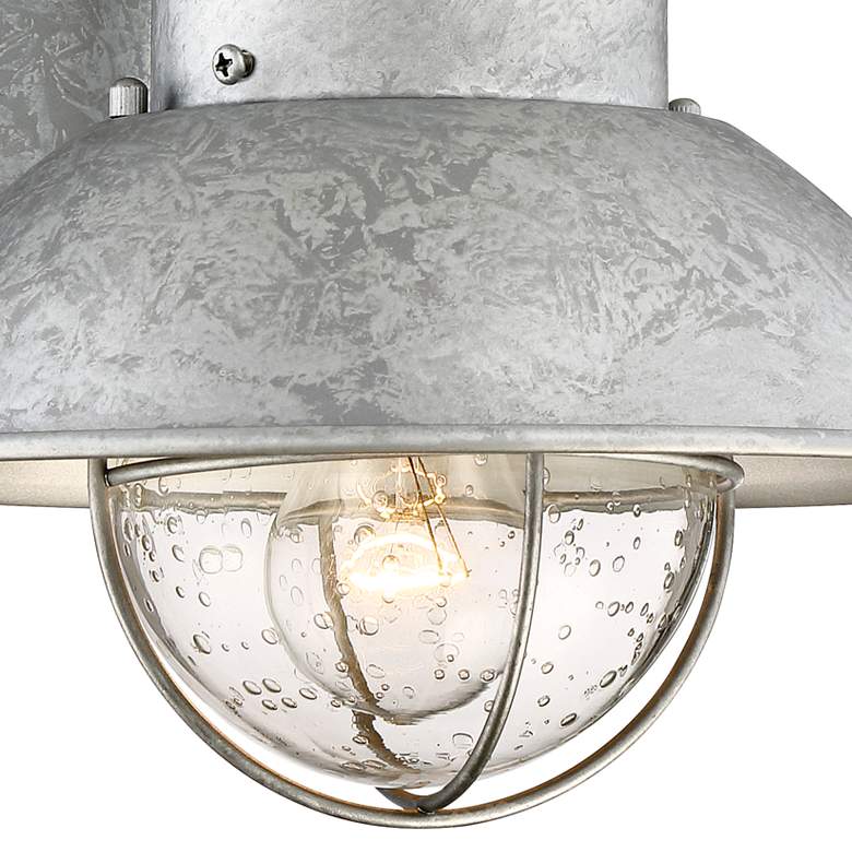 - Steel construction made to look galvanized. Round clear seeded glass shade.