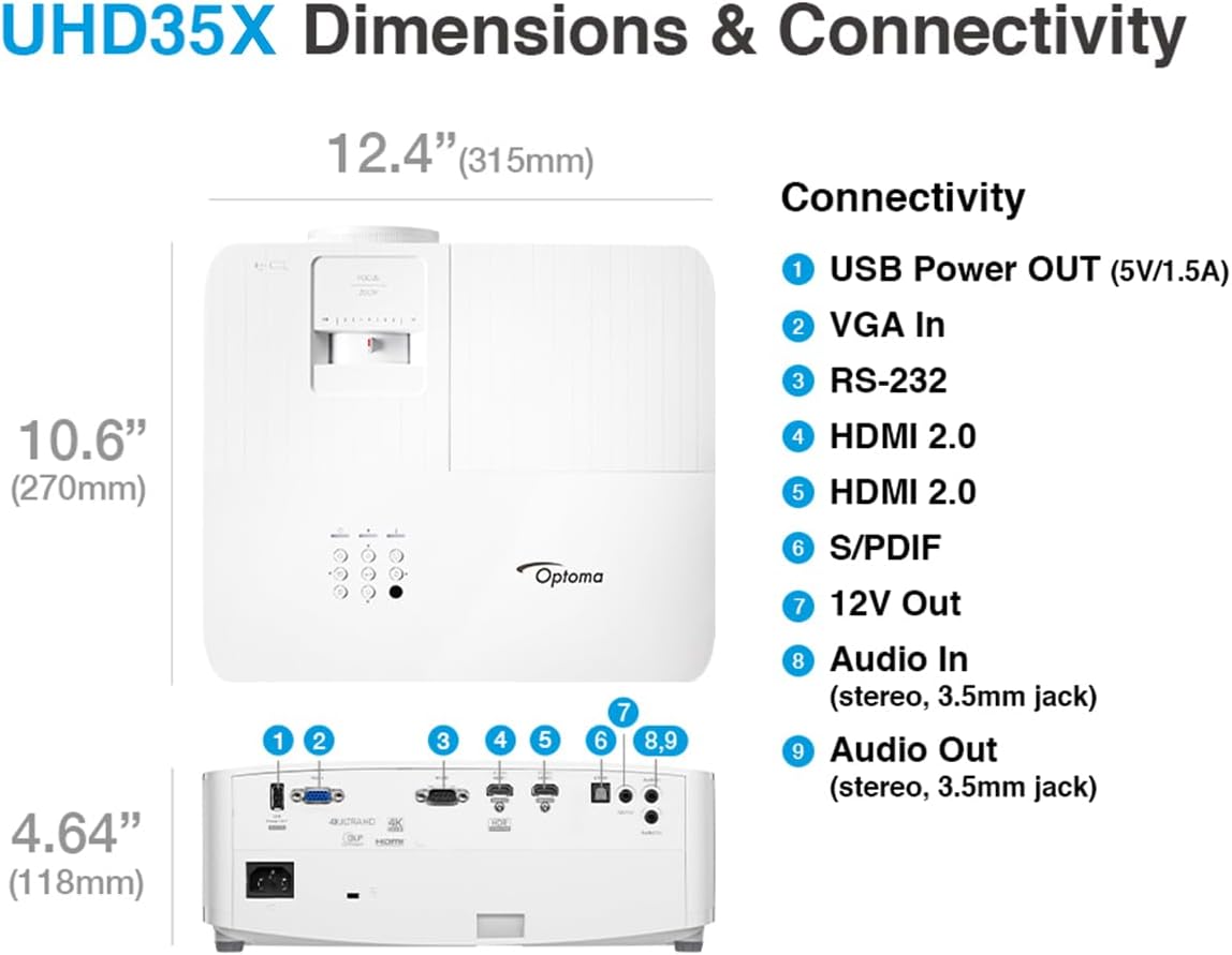 Optoma UHD35X Technology 3600-Lumen UHD 4K DLP Projector - White