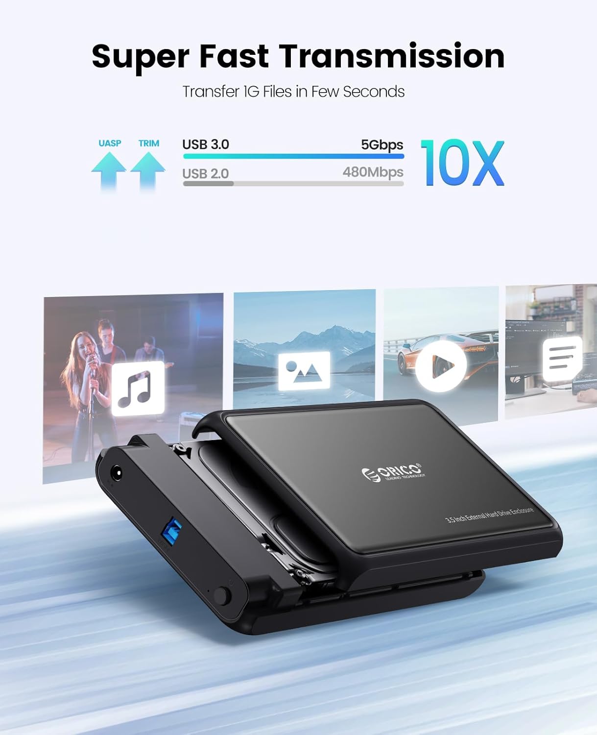 ORICO External Hard Drive Enclosure for 3.5 2.5 Inch SATA SSD HDD, up to 20TB Capacity, USB 3.2 Gen 1 High Transmission Speed, UASP and Trim Enabled, Compatible with WD Seagate Toshiba Samsung