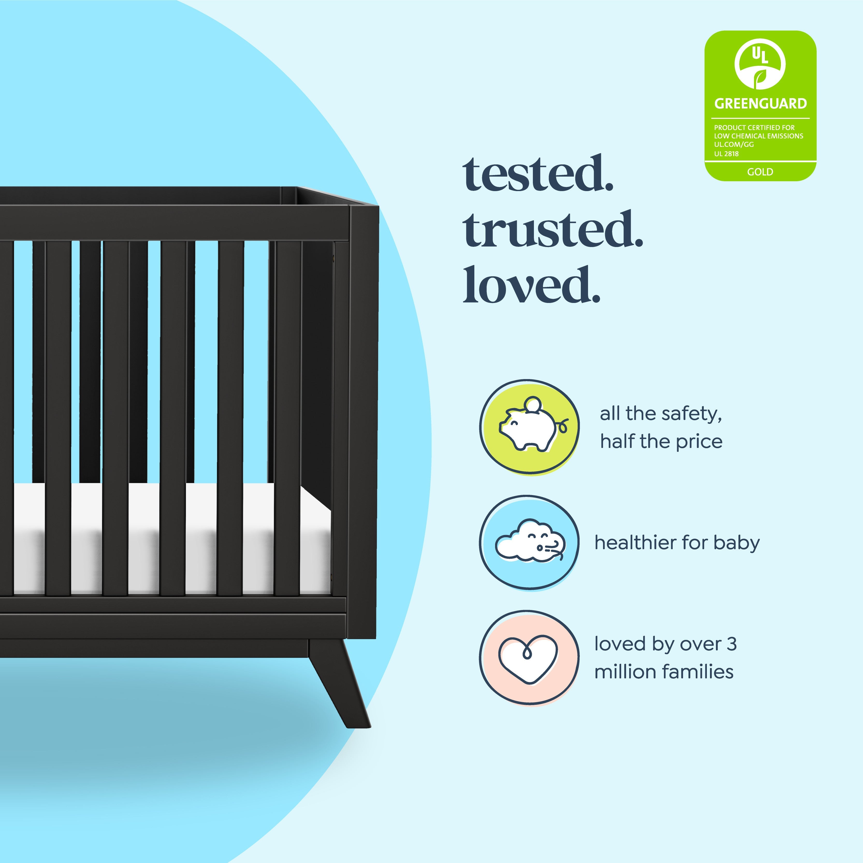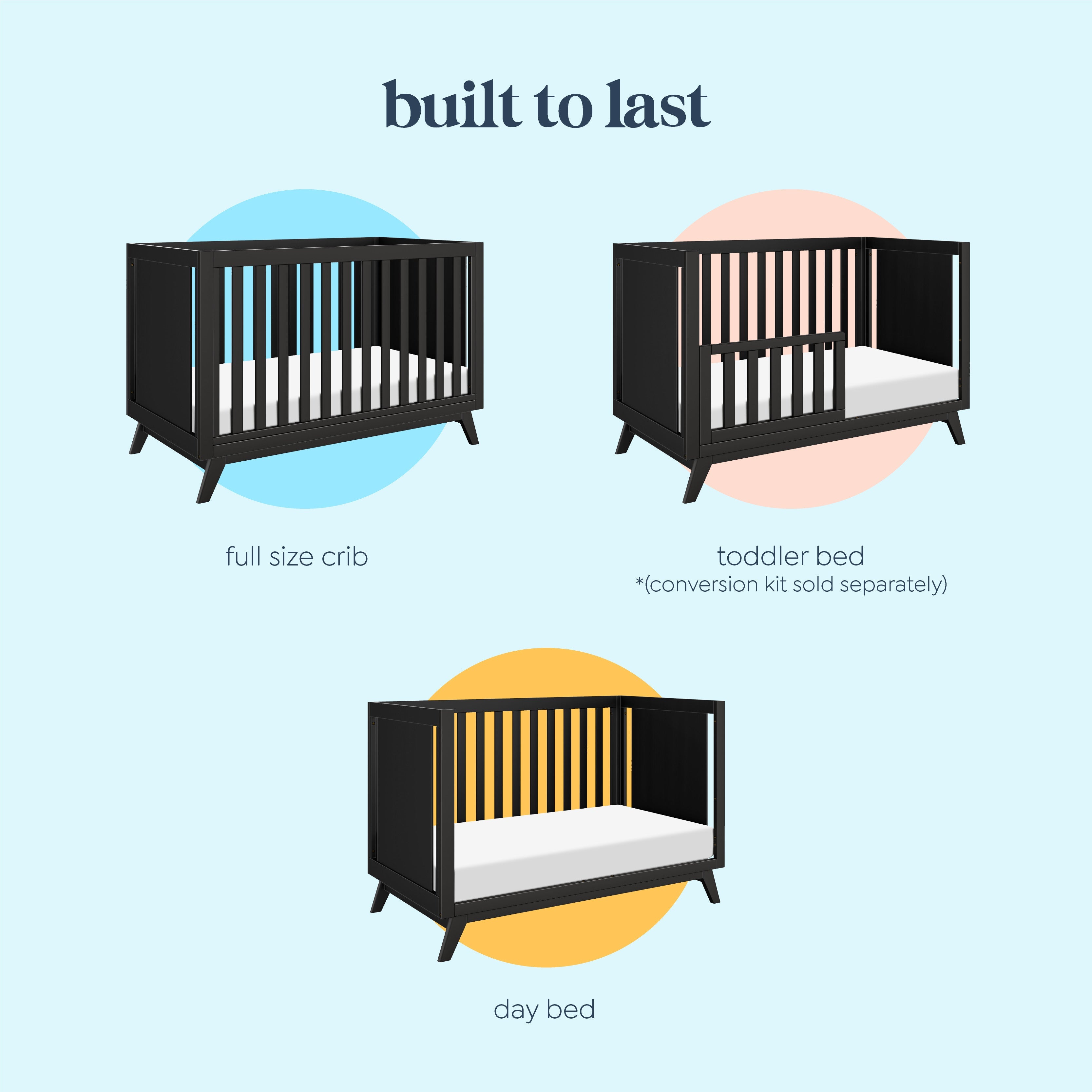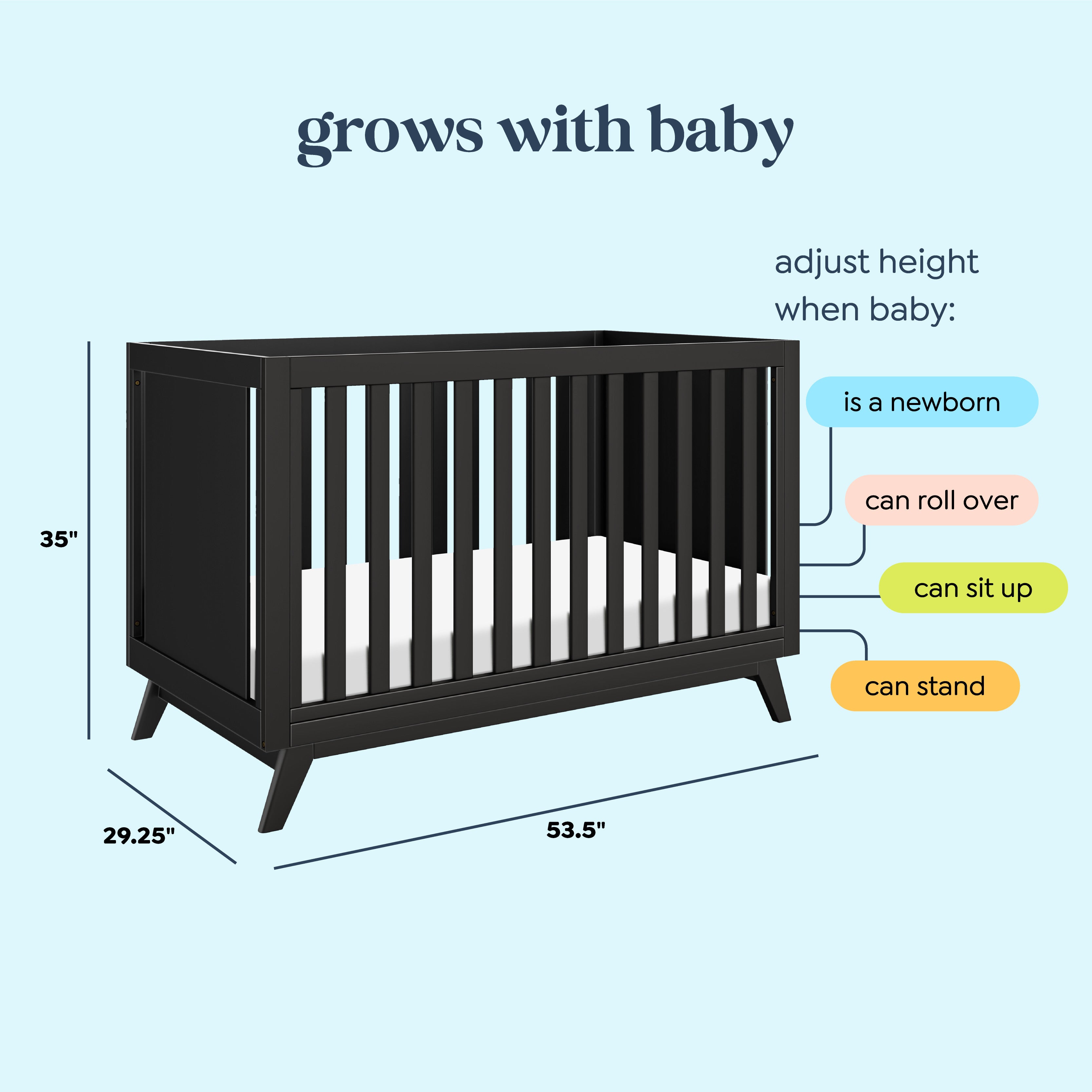 The Otto 3-in-1 Convertible Crib captures the timeless mid-century modern design with its clean lines, flared legs, and solid wooden slats. Built to seamlessly transition from newborn to toddler, the crib has four different mattress heights and easily converts to a toddler bed and daybed. Coordinates with the Otto Convertible Changing Table and Cubby Bookcase for a stylish and modern nursery.