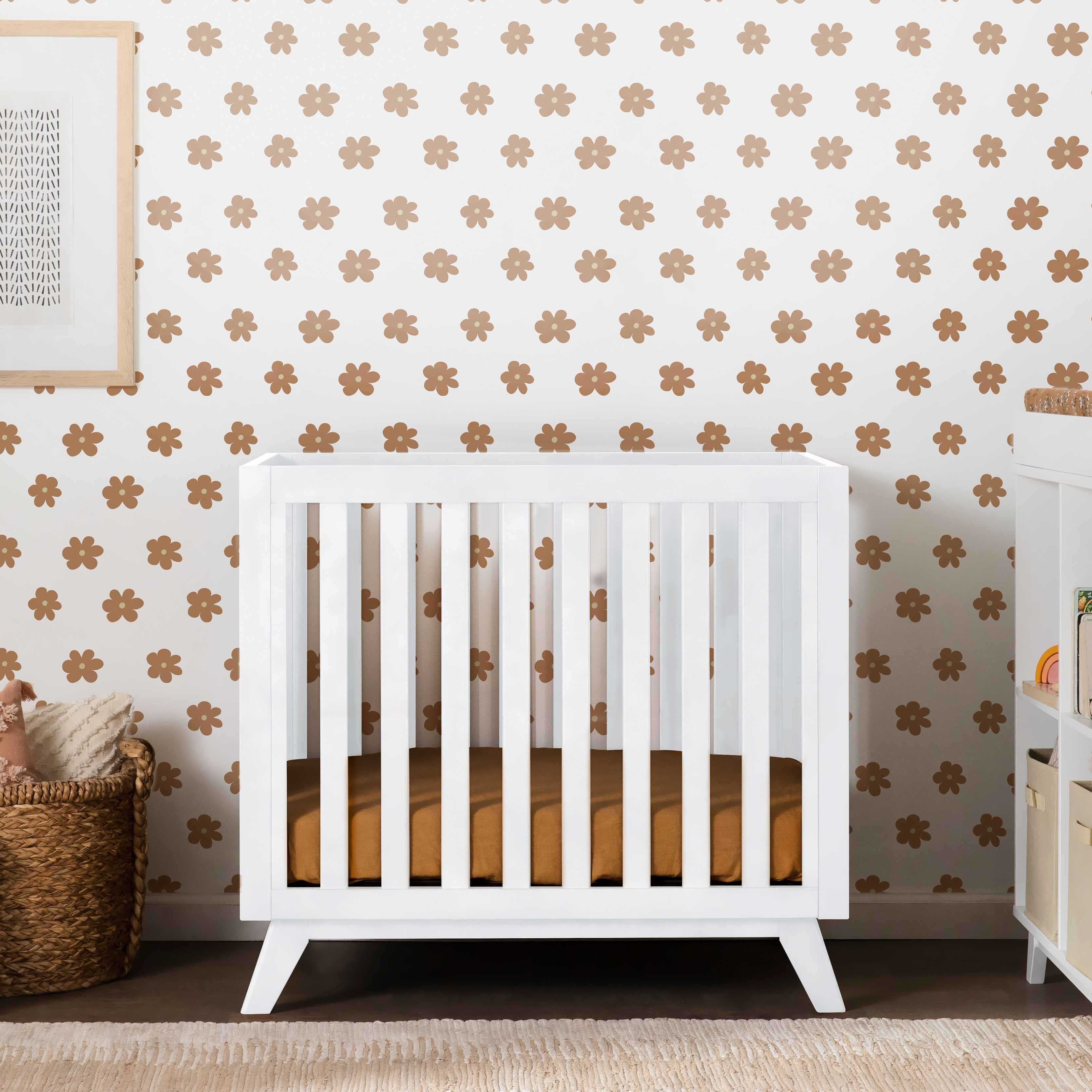 The mid-century modern Otto 3-in-1 Convertible Mini Crib is designed so that you don’t have to sacrifice style for small space. This mini-sized version of our full-sized crib has the same clean lines, flared legs, and solid wooden slats, and a 4" mini crib mattress included with purchase. The Otto grows with your child with its four different mattress height positions and converts into a mini toddler bed and daybed. Coordinates with the Otto Convertible Changing Table and Cubby Bookcase for a stylish and modern nursery.