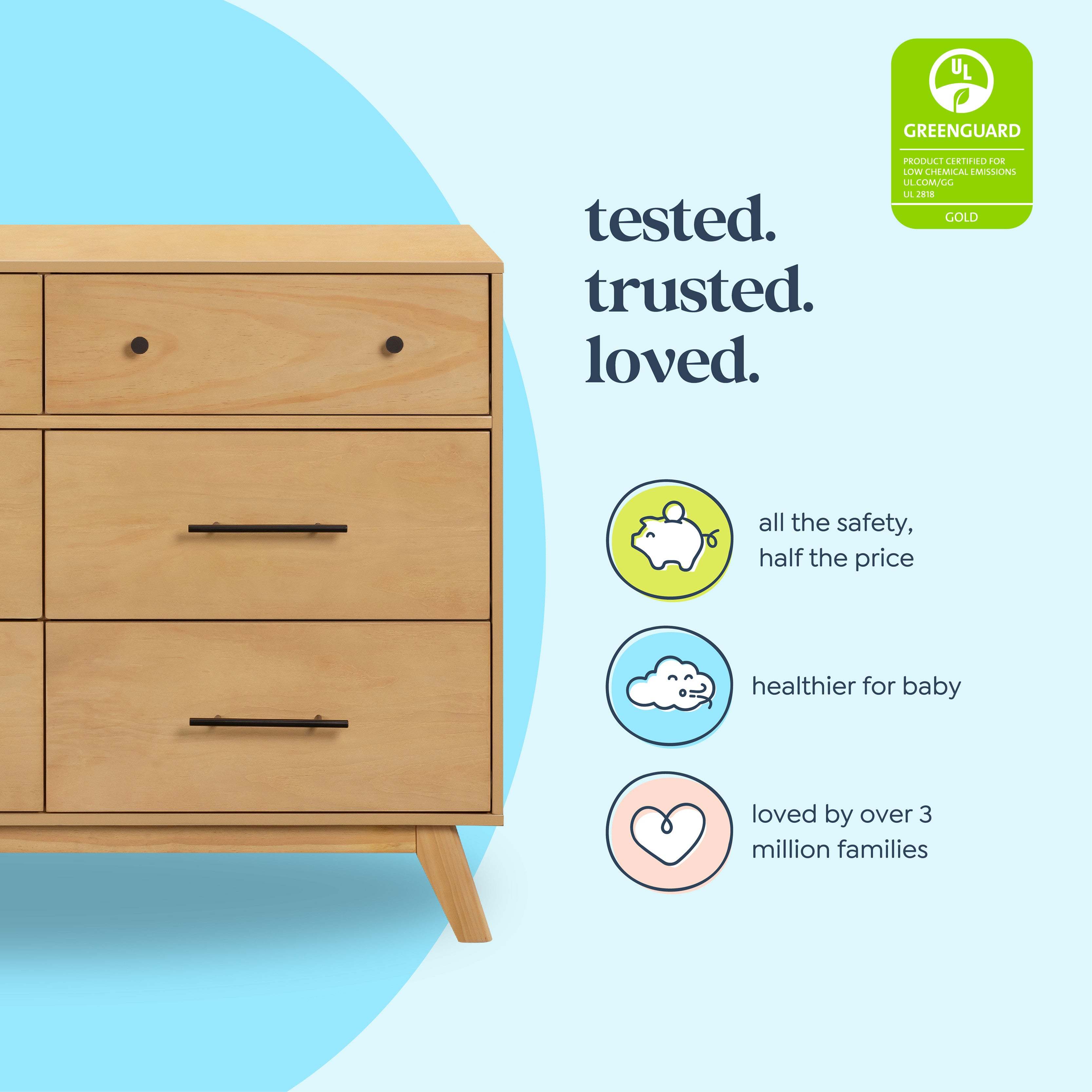 The Otto 6-Drawer Dresser captures the timeless mid-century modern design with its clean lines, flared legs, and metal hardware. Made with high-quality materials, this dresser features 6 drawers with ample storage for your baby's essentials. With its timeless design, the Otto dresser will complement any bedroom furniture.