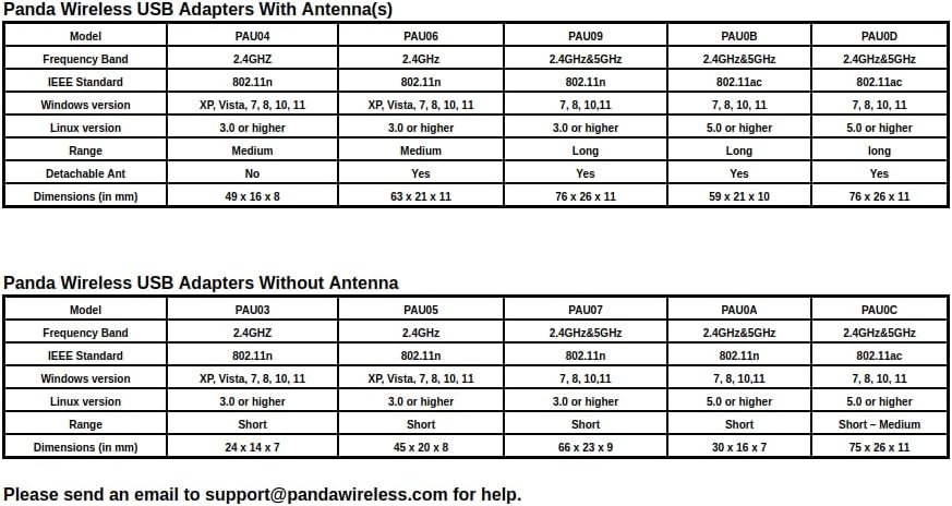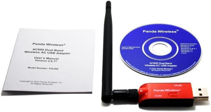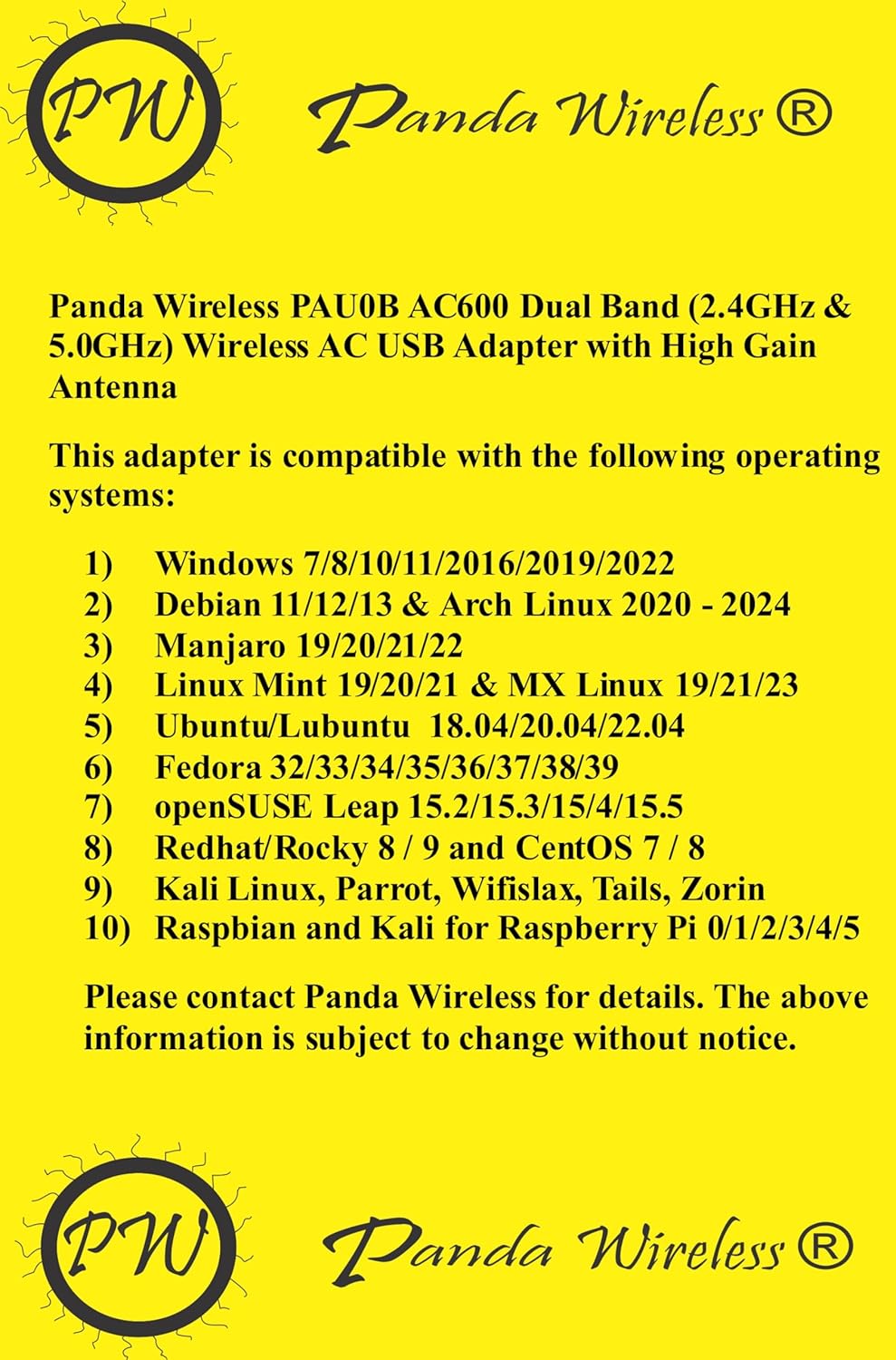 Panda Wireless® PAU0B AC600 Dual Band (2.4GHz and 5GHz) Wireless N USB Adapter W/High Gain Antenna - Windows 7/8/8.1/10/11, Zorin, Mint, Ubuntu, openSUSE, Fedora, Kali Linux and Raspbian