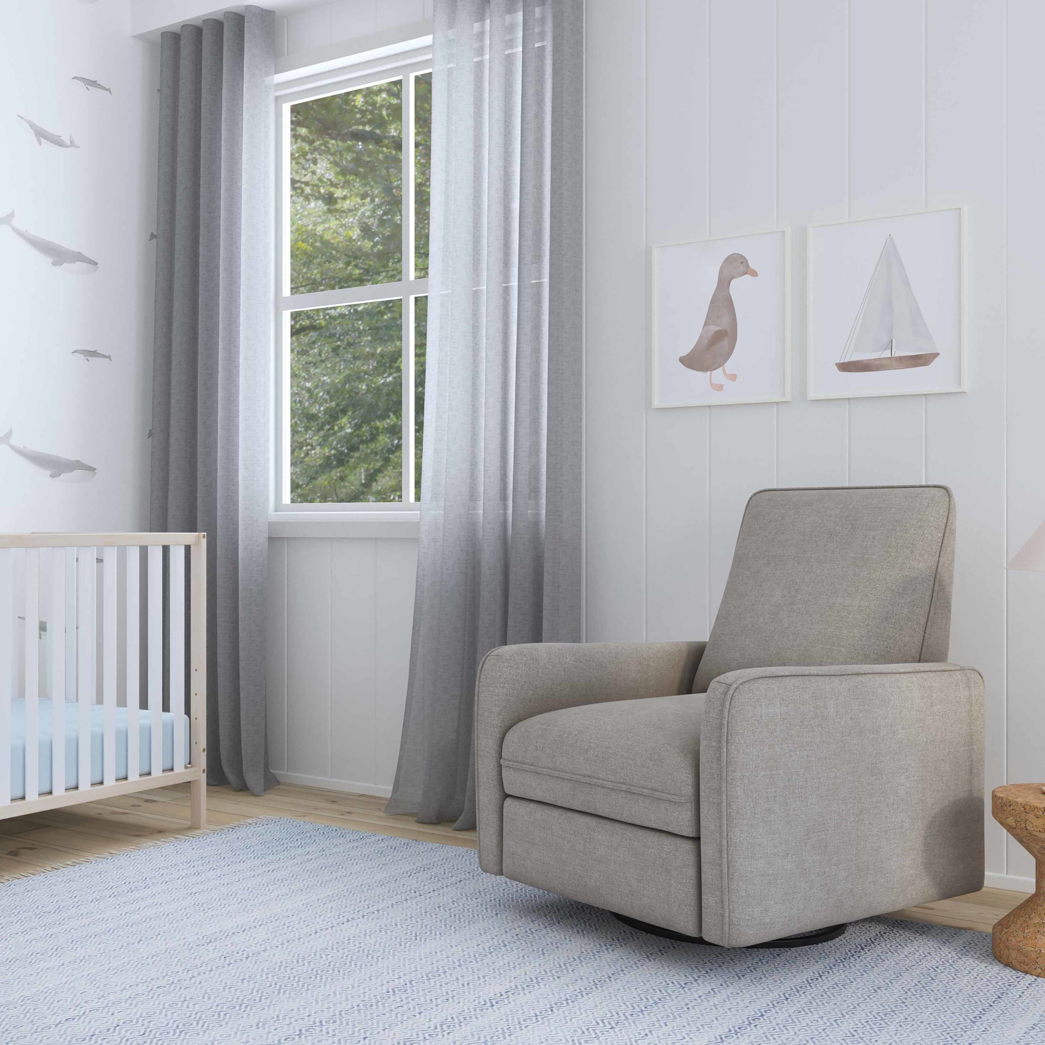 The Penny Swivel Recliner blends classic design with a contemporary silhouette. Outlined by delicate flange seams, the glider highlights subtle details, while its plush cushions offer a relaxing space throughout the day. With its timeless style, the Penny brings a versatile piece into the nursery that seamlessly transitions into your living spaces as your baby grows.