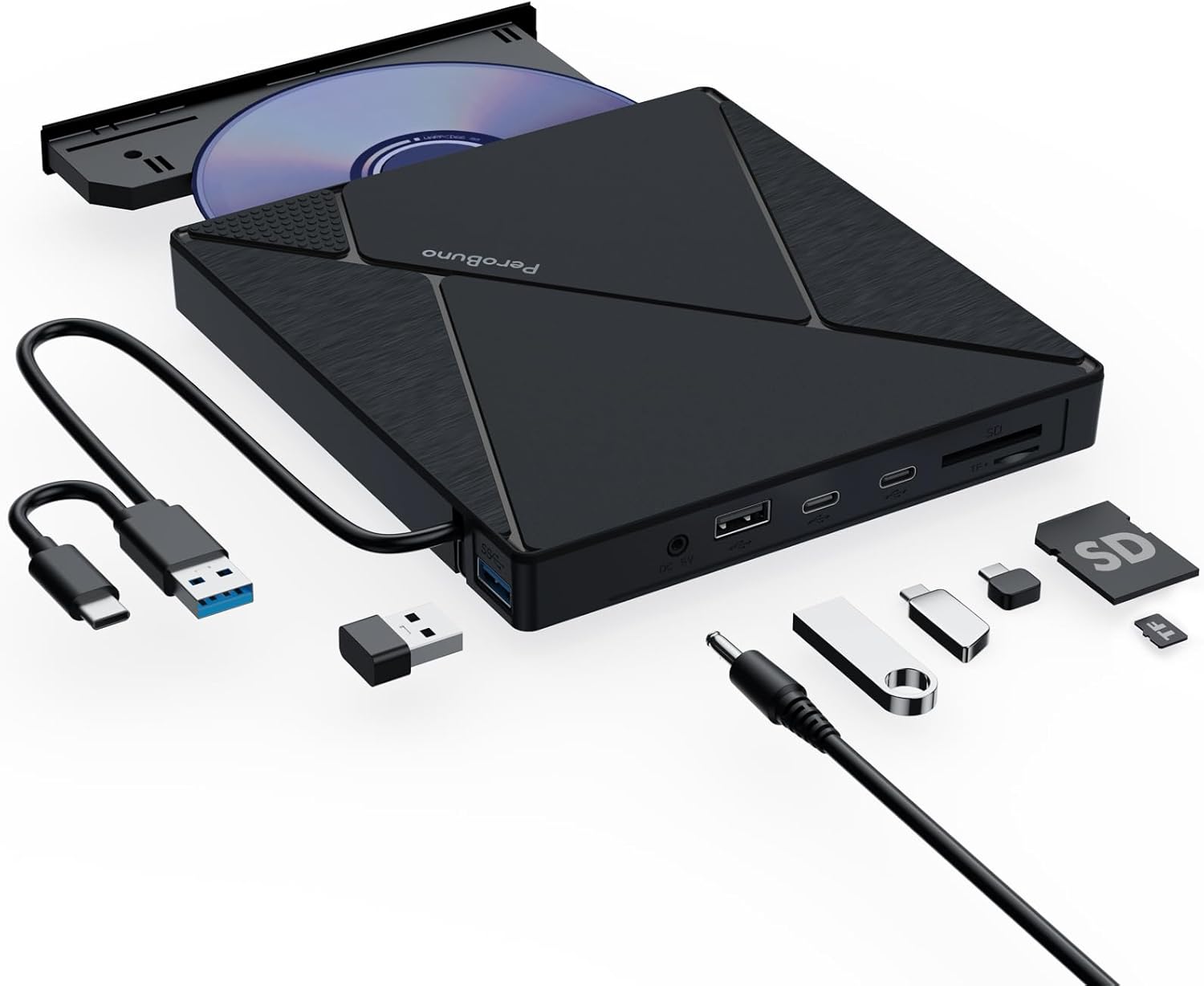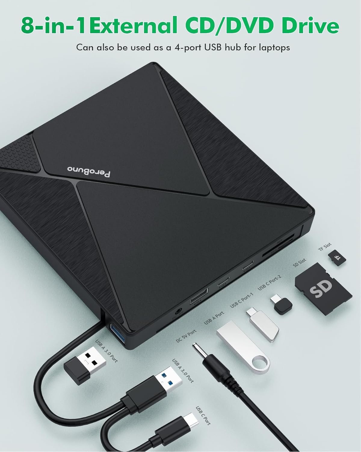 PeroBuno External CD DVD Drive, USB 3.0 Optical Disc Drive, 4 USB Ports and 2 TF/SD Card Slots, CD DVD... Read more Read more