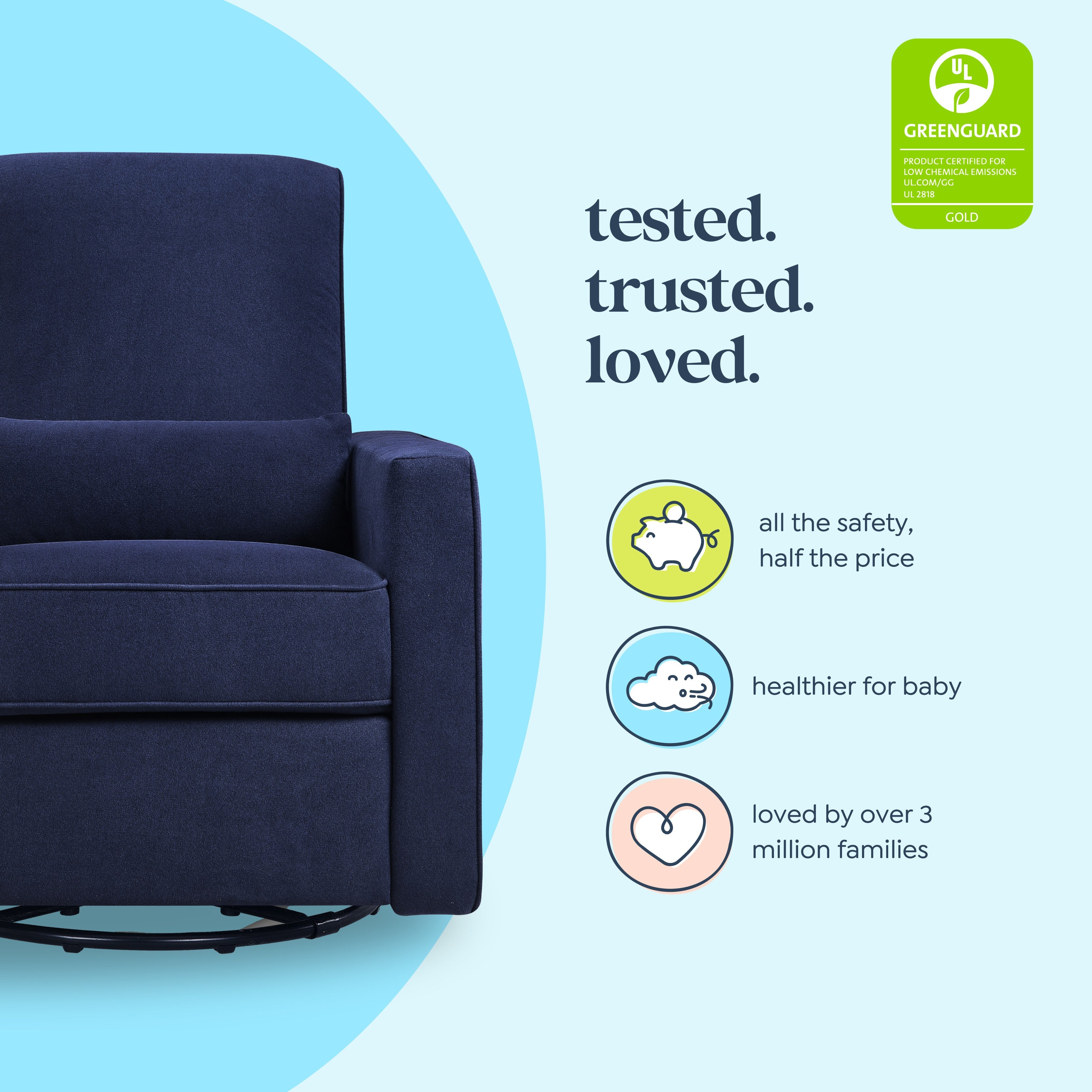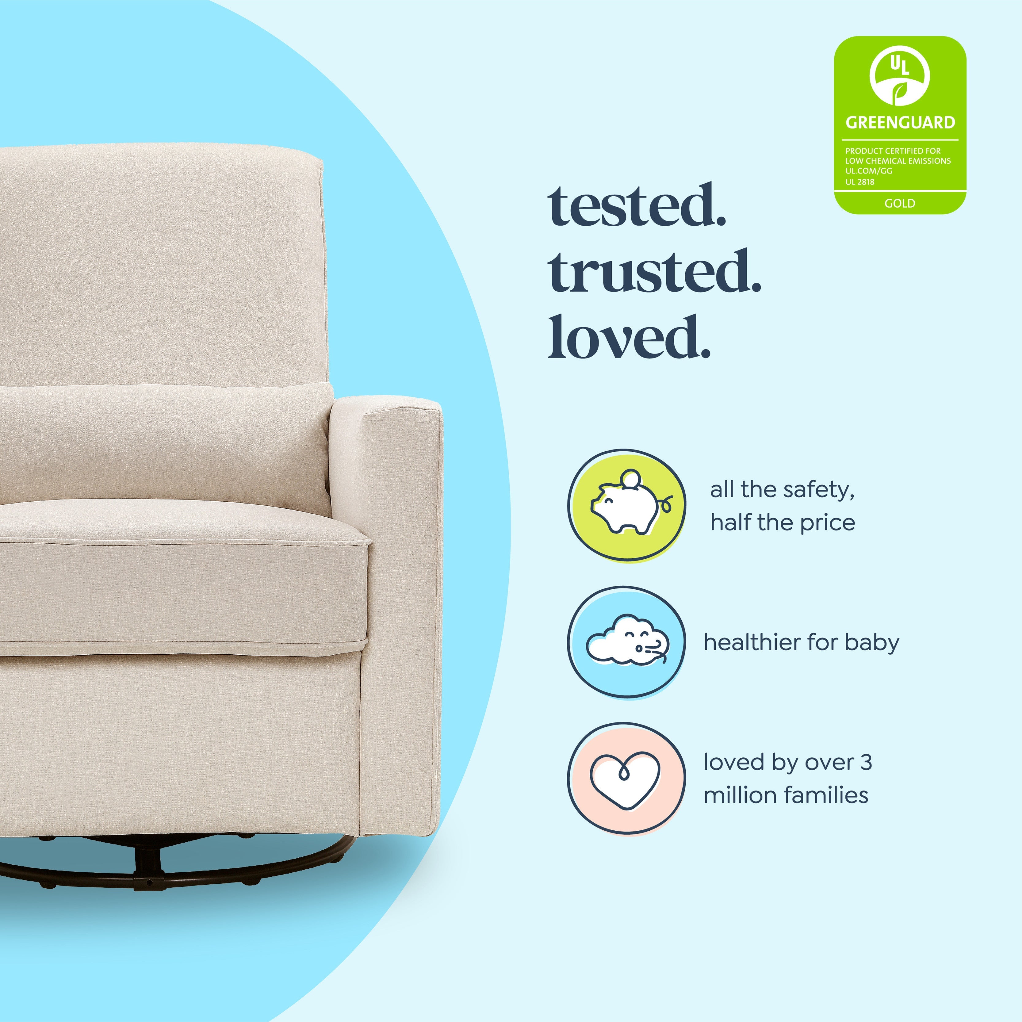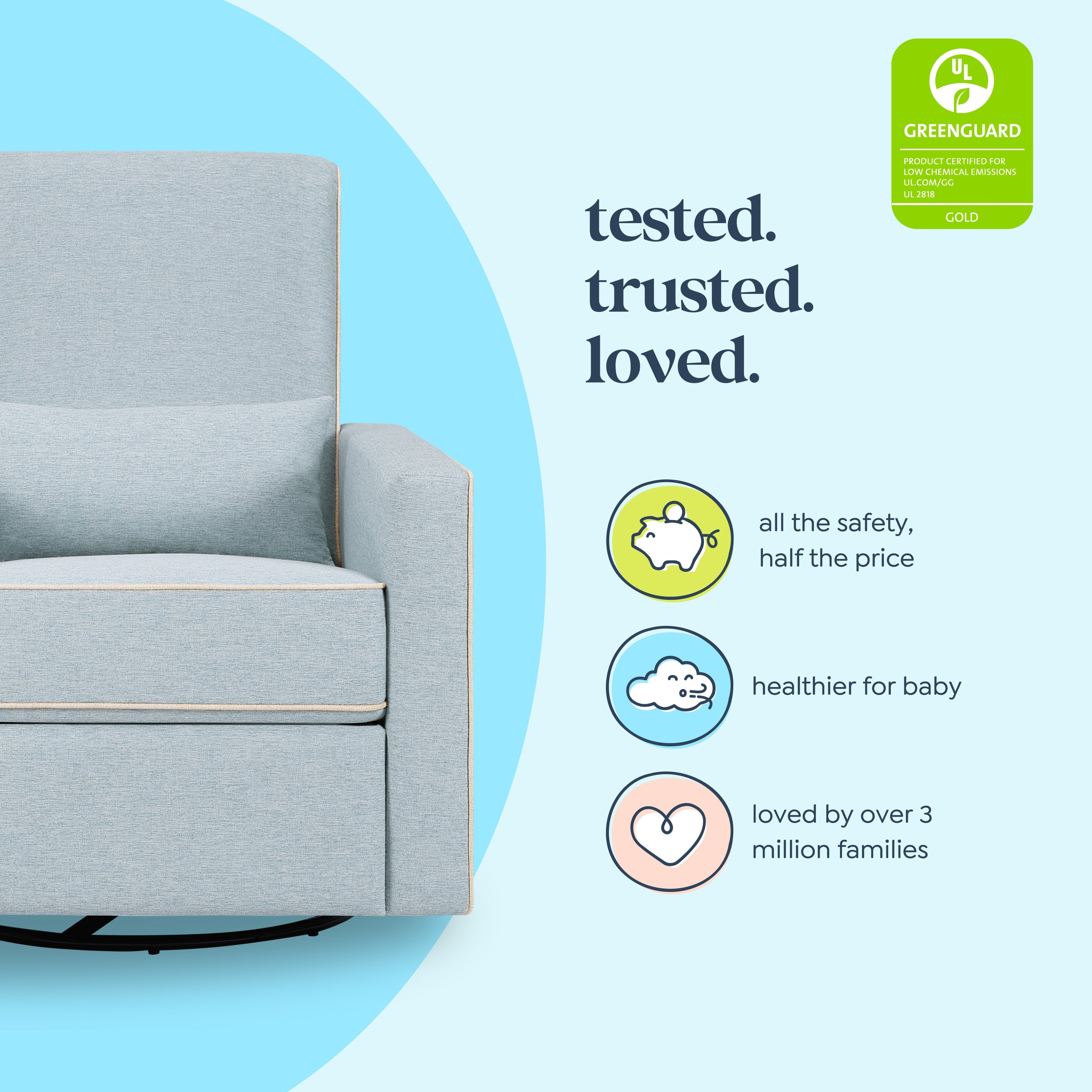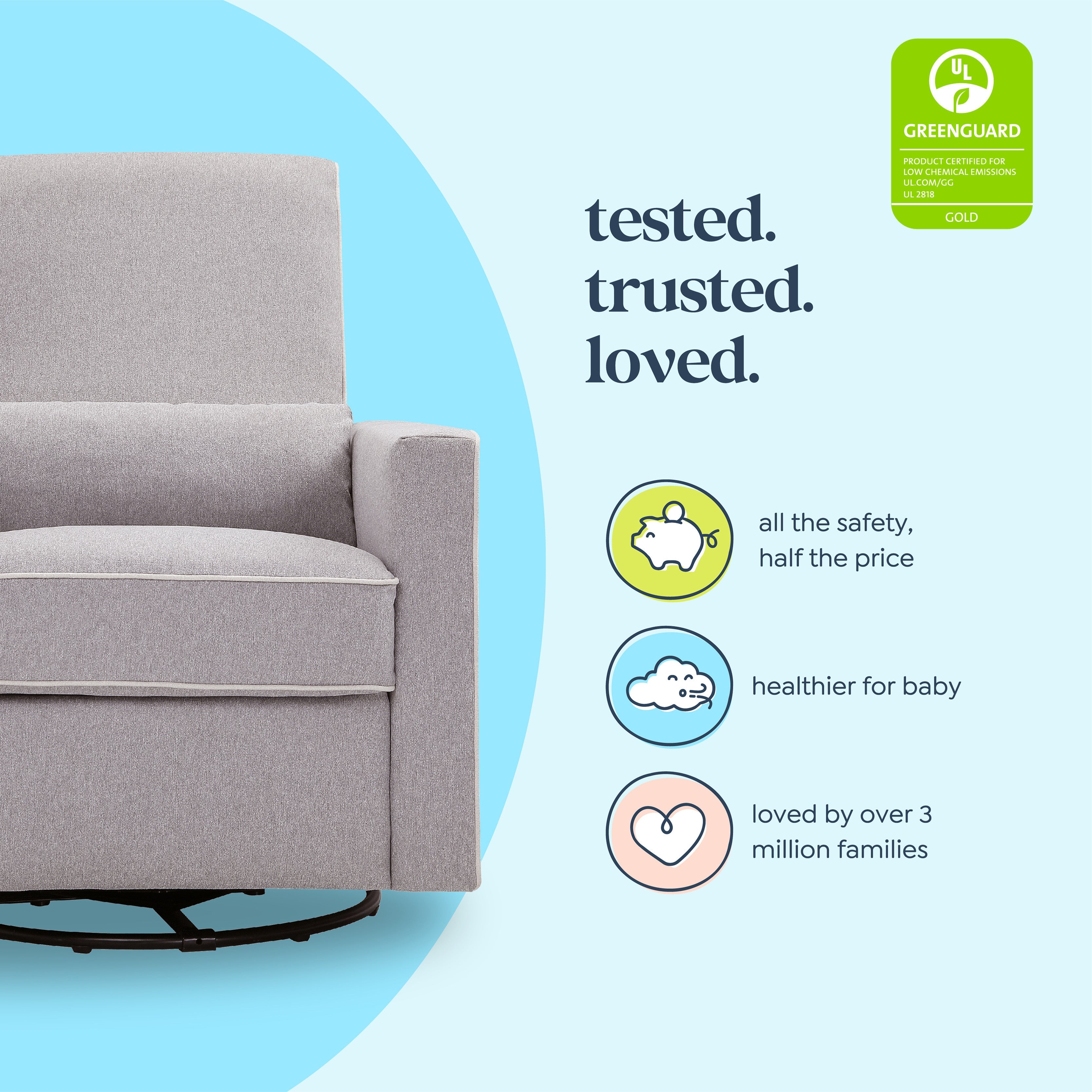 Crafted with new parents' and nursing mothers’ needs in mind, the Piper Recliner and Glider features 360 swivel motion, forward and backward gliding function and a plush pop-up leg rest to provide comfort for feeding and putting baby to rest. Its reclining mechanisms are hidden and thoughtfully within easy reach. Constructed of soft and durable heathered polyester fabric, the Piper Glider offers a timeless design and can be used well beyond the nursery years.