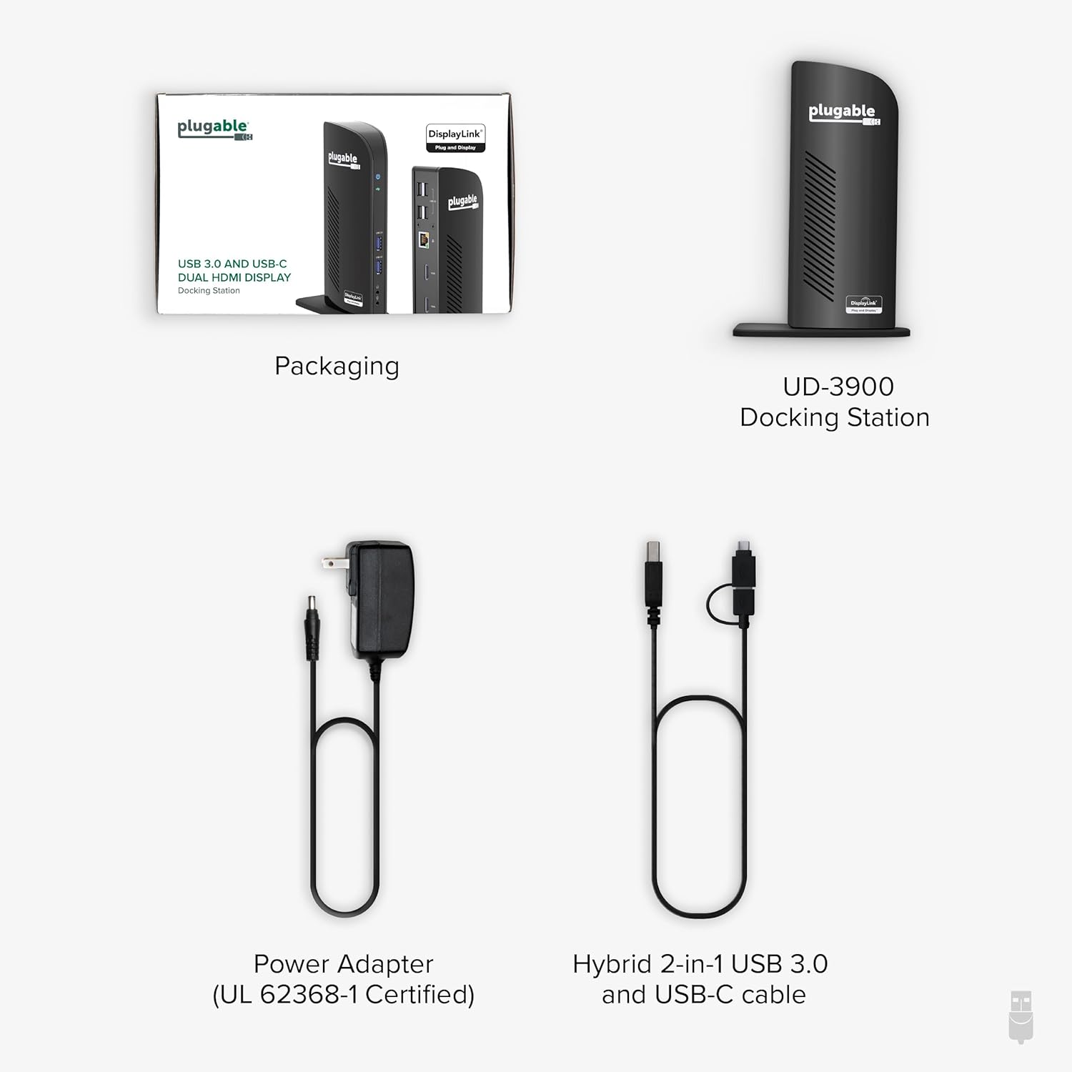 Plugable Universal Laptop Docking Station Dual HDMI Monitor for Windows and Mac (Driver Required), USB 3.0 or USB-C, 2X HDMI, Gigabit Ethernet, Audio, 6 USB Ports (UD-3900)