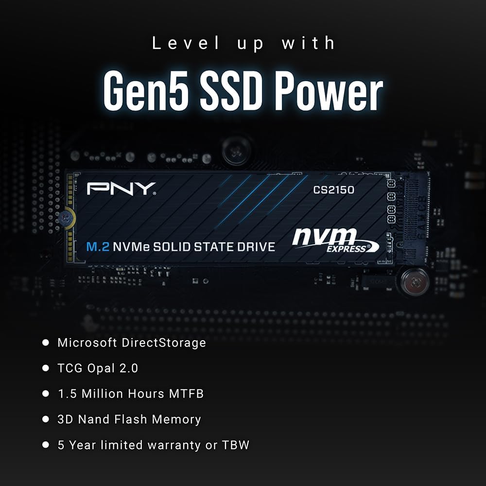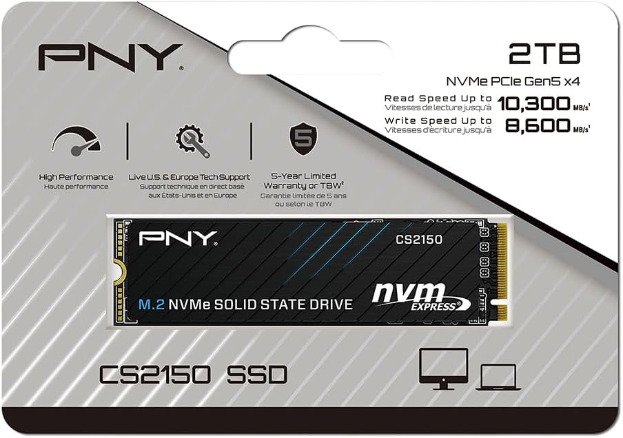 PNY CS2150 2TB Gen5 PCIe NVMe M.2 2280 3D NAND SSD – Up to 10,300/8,600 MBs - PC/Laptop Upgrade, Gaming,... Read more Read more