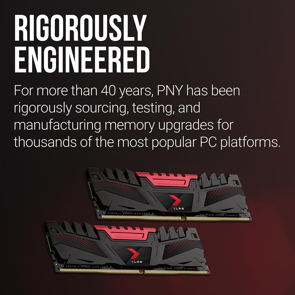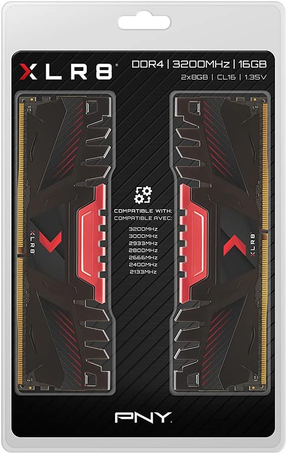 PNY XLR8 Gaming 16GB (2x8GB) DDR4 DRAM 3200MHz (PC4-25600) CL16 1.35V Dual Channel Desktop (DIMM) Memory Kit – MD16GK2D4320016AXR