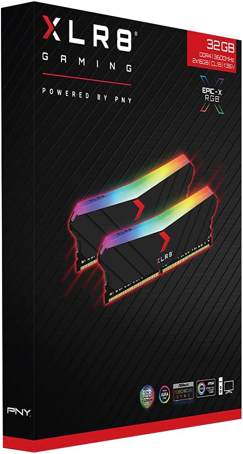 PNY XLR8 Gaming 32GB (2x16GB) DDR4 DRAM 3600MHz (PC4-28800) CL18 1.35V RGB Dual Channel Desktop (DIMM) Memory – MD32GK2D4360018XRGB