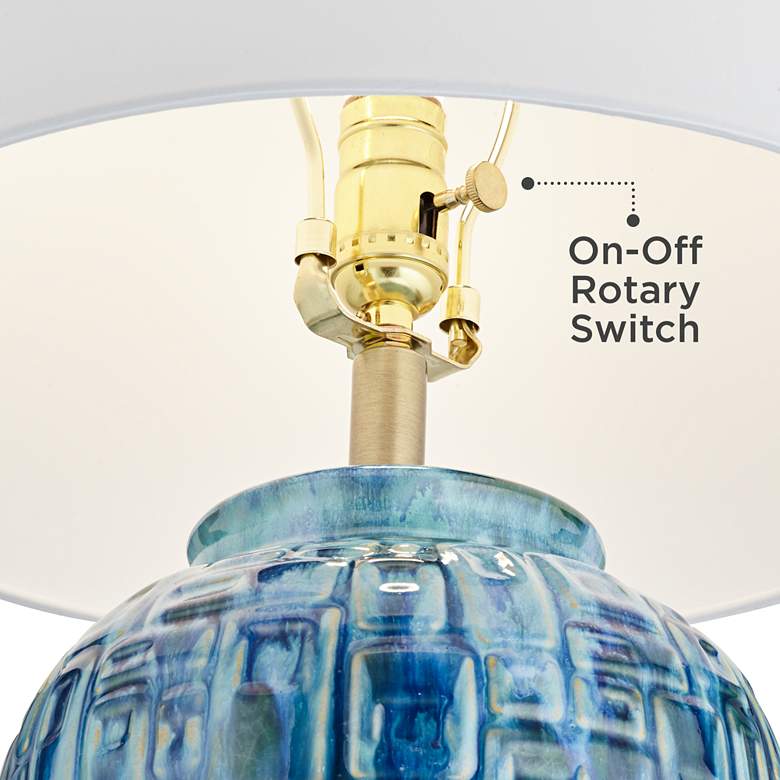 - Textured ceramic jar lamps. Handcrafted teal glaze finish. Designer lamp style from the Possini Euro Design brand.