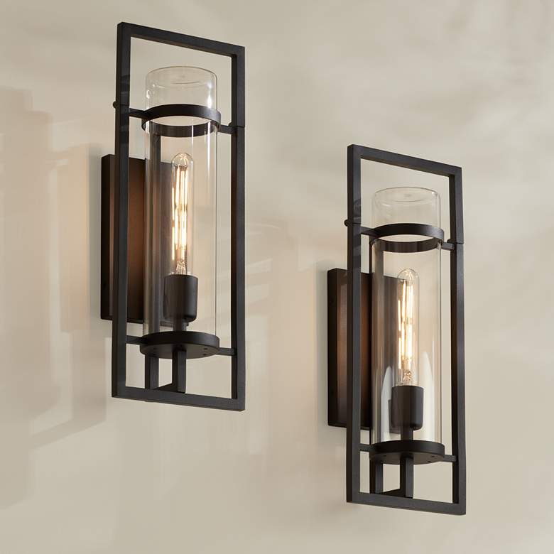 Possini Euro Castello 18"H Sand Black Wall Sconce Set of 2