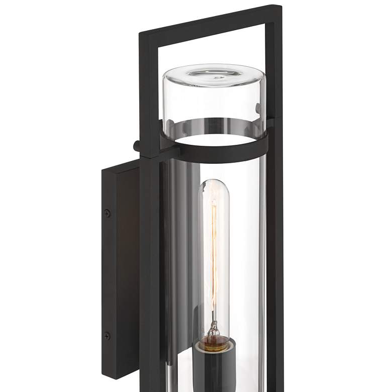 Fresh from the Possini Euro Design® brand, the Castello wall sconce cuts an impressive figure in lighting and modern design. This contemporary style features a classy sand black finish and bold lines to direct attention to the clear glass in the center. A single bright bulbs provides unfiltered illumination to your home's exterior. The Castello outdoor wall light is wet location rated for indoor use.