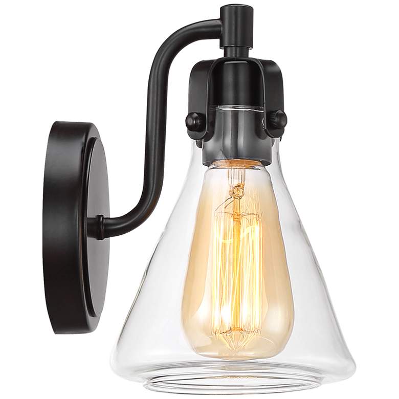 Taking inspiration from the Erlenmeyer Flask, this set of two beaker wall sconces is a stylish piece to add for your bathroom. The handsome bronze finish brings warmth to the space and the glass shade has a distinct shape that sets it apart. Add an Edison style bulb to complete the look.