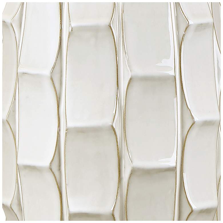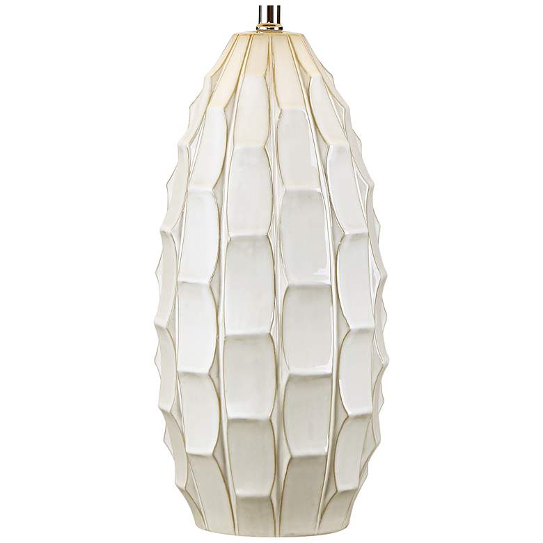 - White glazed finish. Hand-crafted textured ceramic base. Because the base is handmade, there may be slight variations in color and pattern.
