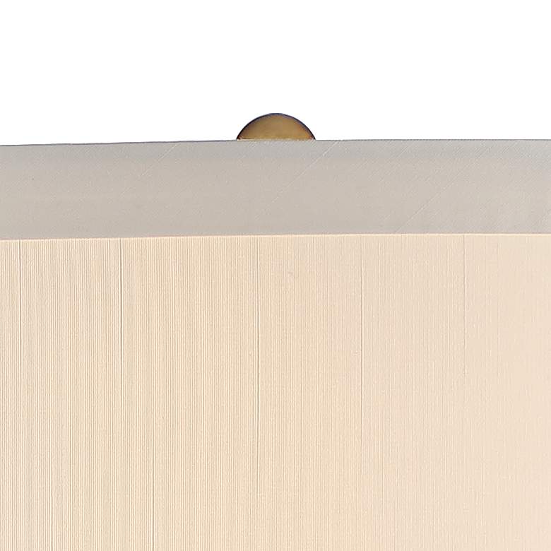 - Off-white fabric shade with a wide band of self trim top and bottom. 8-foot long cord.
