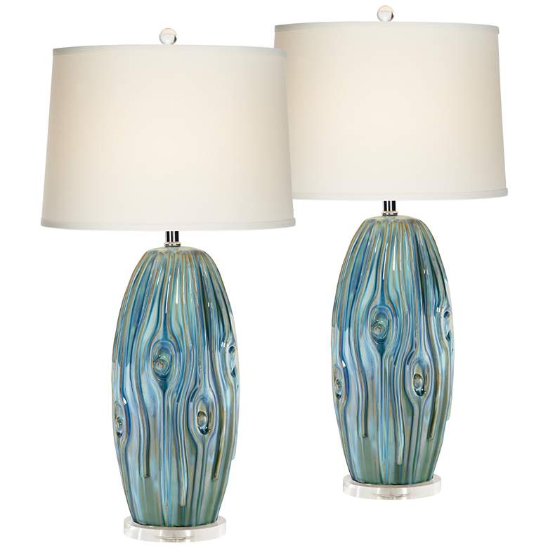 Possini Euro Eneya 31" Blue-Green Ceramic Table Lamps Set of 2