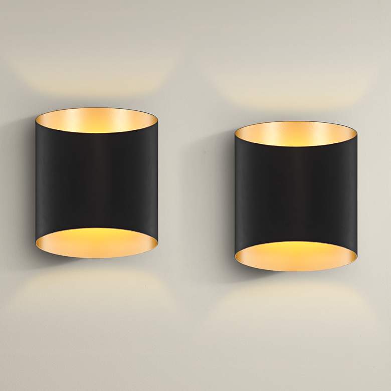 Possini Euro Everard 10" High Black and Gold LED Wall Sconce Set of 2