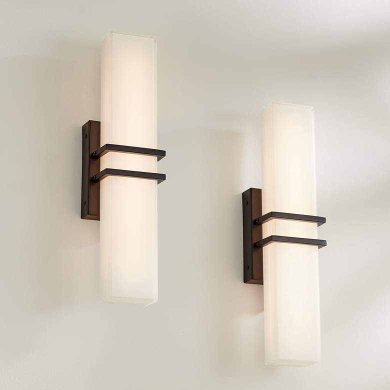 Possini Euro Exeter 17" Wide Black LED Bathroom Vanity Light Set of 2