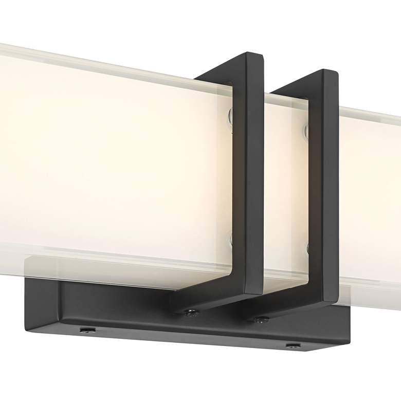 Upgrade your bathroom with the sleek, modern look of this linear bath light. This bathroom wall light features a rectangular silk-screen glass shade set against a handsome black finish backplate. Energy-efficient LED modules are built directly into the design to provide power-saving lighting. Can be installed vertically or horizontally.