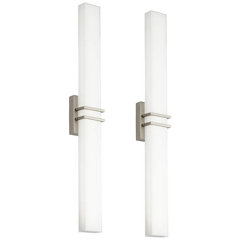 Possini Euro Exeter 36" High Nickel LED Modern Bathroom Light Set of 2