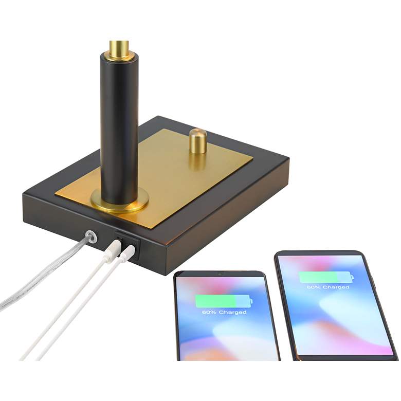 Possini Euro Hayven Black and Warm Gold Desk Lamp with Dual USB Ports